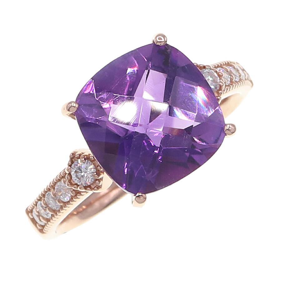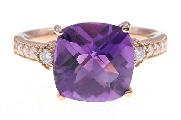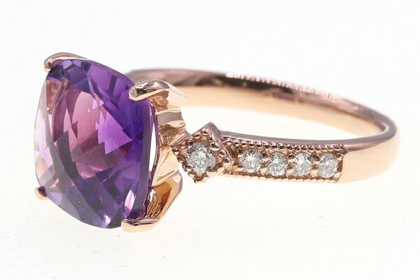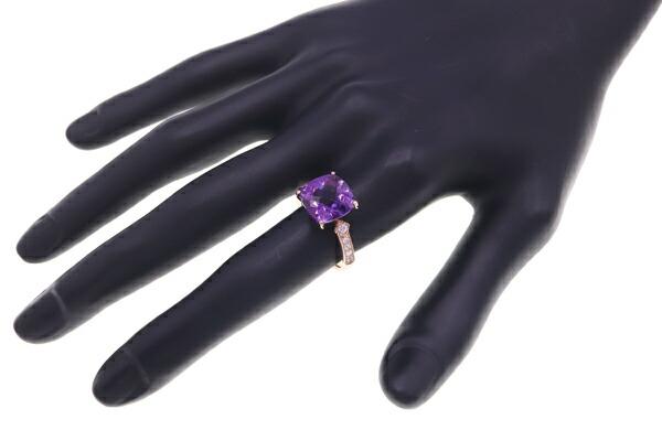 アメシストダイヤモンドリングA3.50ctD0.17ctK18PG12号中古指輪アクセサリージュエリー宝石ストーンレディース女性AmethystDiamond