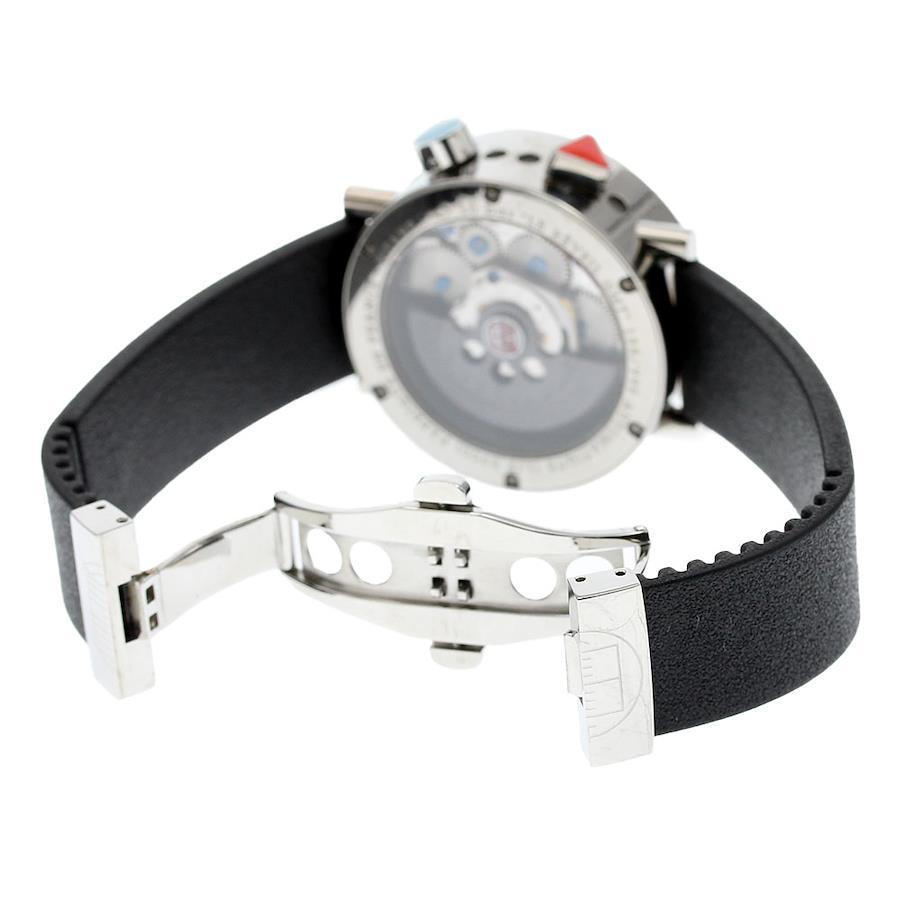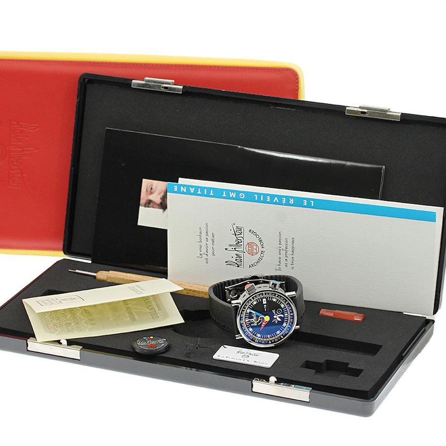 ■商品情報ブランド: アラン・シルベスタイン/Alain Silbersteinモデル名: ル レヴェイユ対象: メンズ素材: チタン × ラバー文字盤色: ブラックムーブメント:自動巻きRef.No: LG0301Pシリアル:18*/999機能・特徴:デイト,GMT,アラーム付属品:外箱,内箱,保証書(カード),取扱説明書,工具ケースサイズ(w):約 40mmベルトサイズ:約 19cm※ベルトサイズとは、ケース部分も含めた総腕回りのサイズになります。ラグ幅: 19mm日差: +13秒/日 ※参考値OH歴: 弊社では実施しておりません。保証書の情報: 2007/08/03