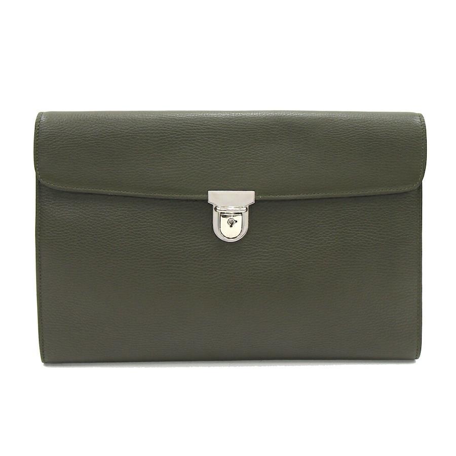 アルフレッドベレッタクラッチバッグダークグリーンレザー中古セカンドバッグ革オールレザーメンズ男性ALFREDOBERETTA