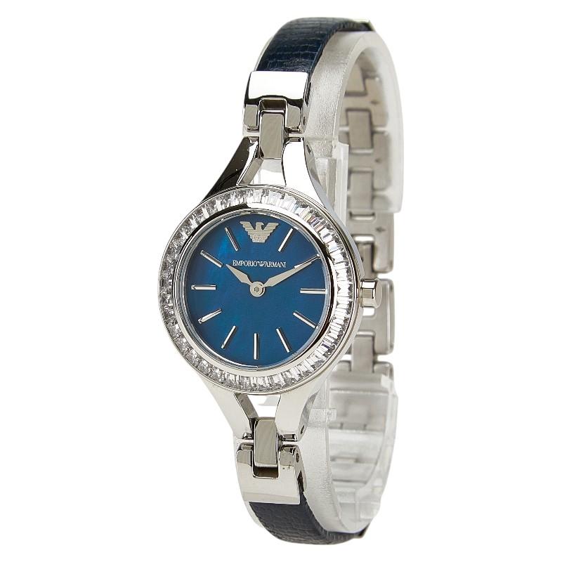 Armani Classic AR7330 Silver Navy Stainless Steel Leather Women's Watch [1-0212147]