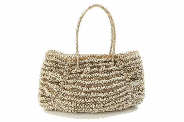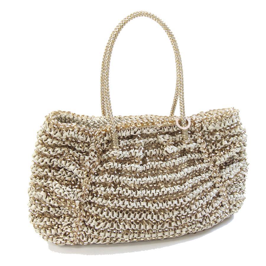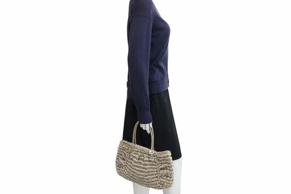 アンテプリマハンドバッグカリーナミディアムゴールドベージュPVCワイヤーファブリック中古ワイヤーバッグ鞄レディースANTEPRIMA