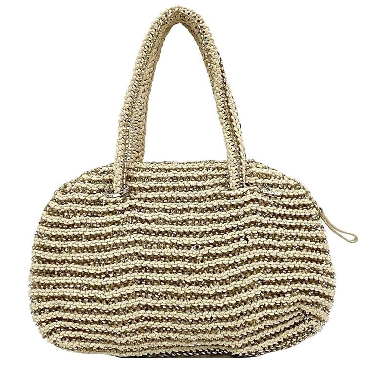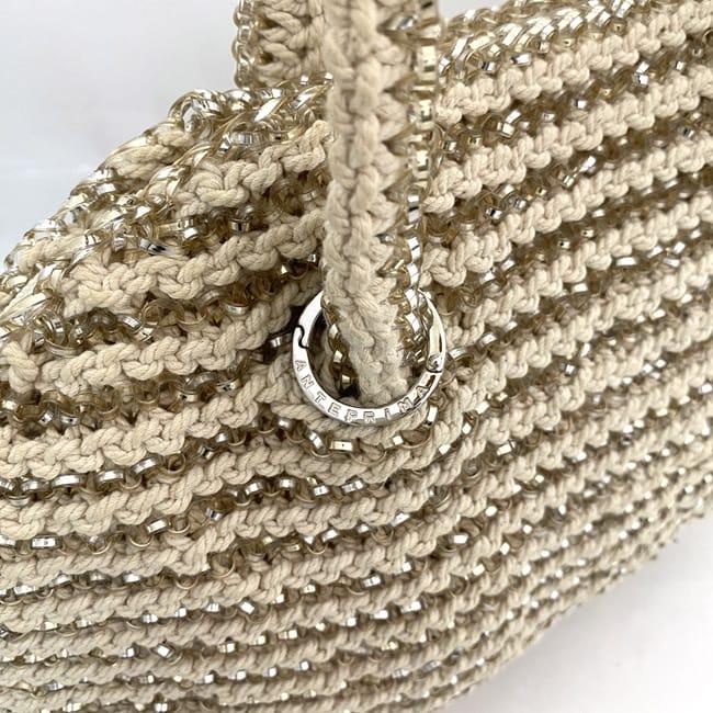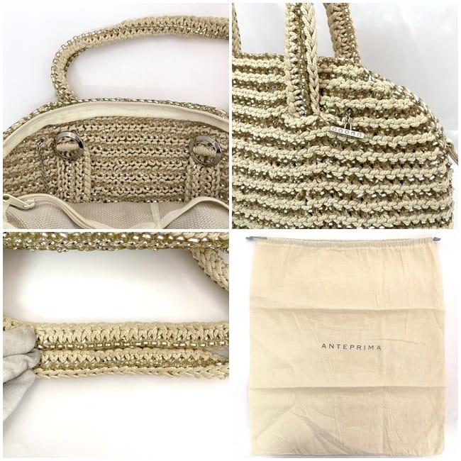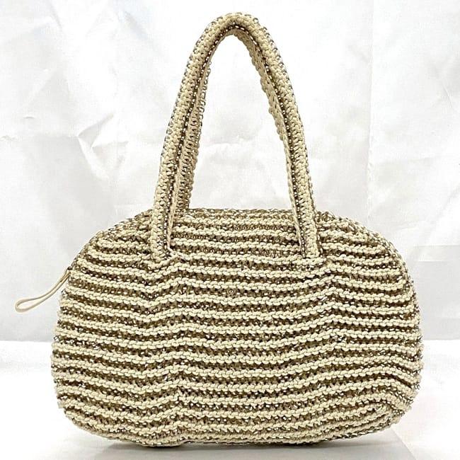 アンテプリマ ハンドバッグ ec-22447 ゴールド ベージュ カリーナ 美品 PVC リボン 中古 ANTEPRIMA 編み込み ファスナー ミニボストン シンプル 定番 人気 レディース お洒落 バッグ 鞄 小さい ボストン エレガント 女性 高級感 上品 ブランド 本物 鑑定済み