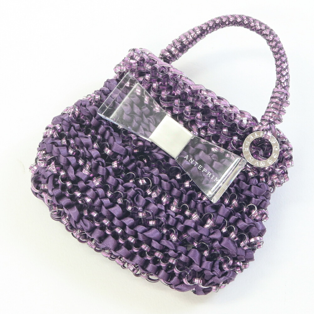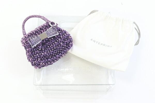 アンテプリマバッグチャームPL13FC1102パープルPVCワイヤー中古キーホルダーキーリングミニバッグリボンレディースANTEPRIMA