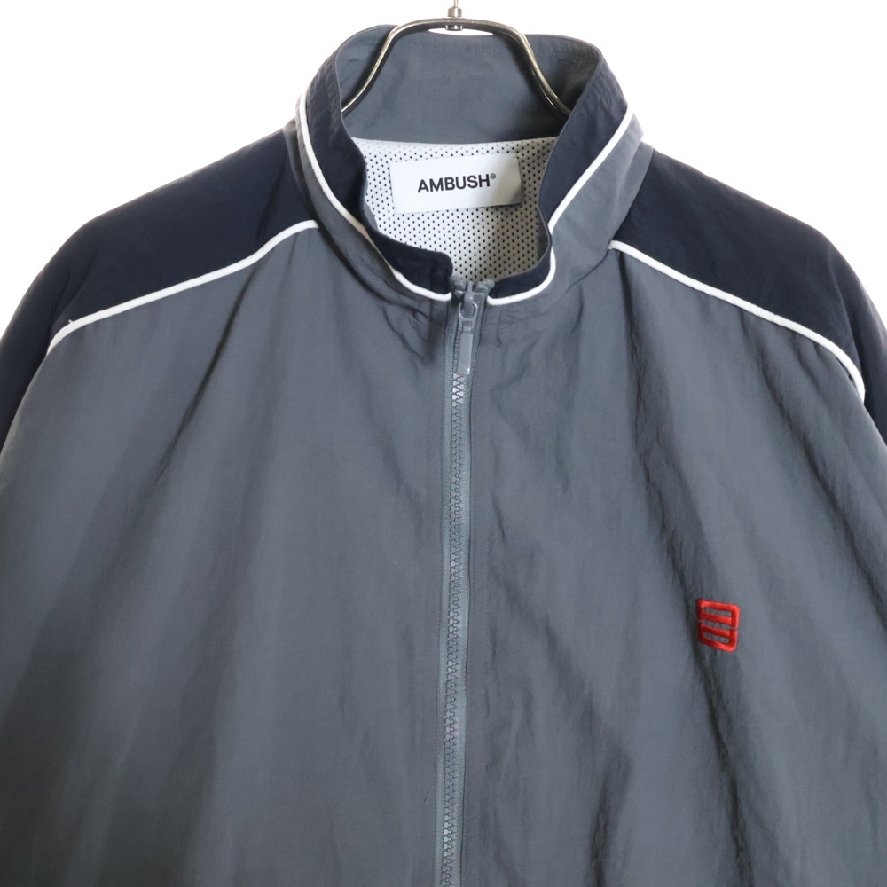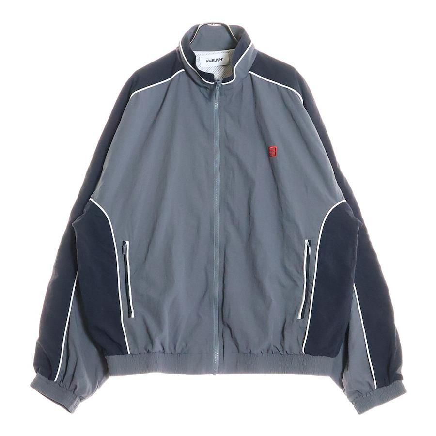 [モデル]ロゴ刺繍 ナイロン ジップアップ トラックジャケット グレー/ブラック 12114316