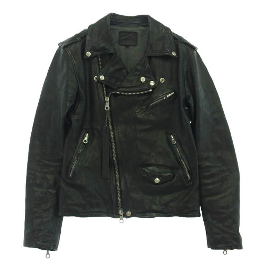 ブラック系【モデル】ITALY SHOULDER GARMENT-DYED JACKET イタリアンショルダー 製品染め セミダブル ライダースジャケット