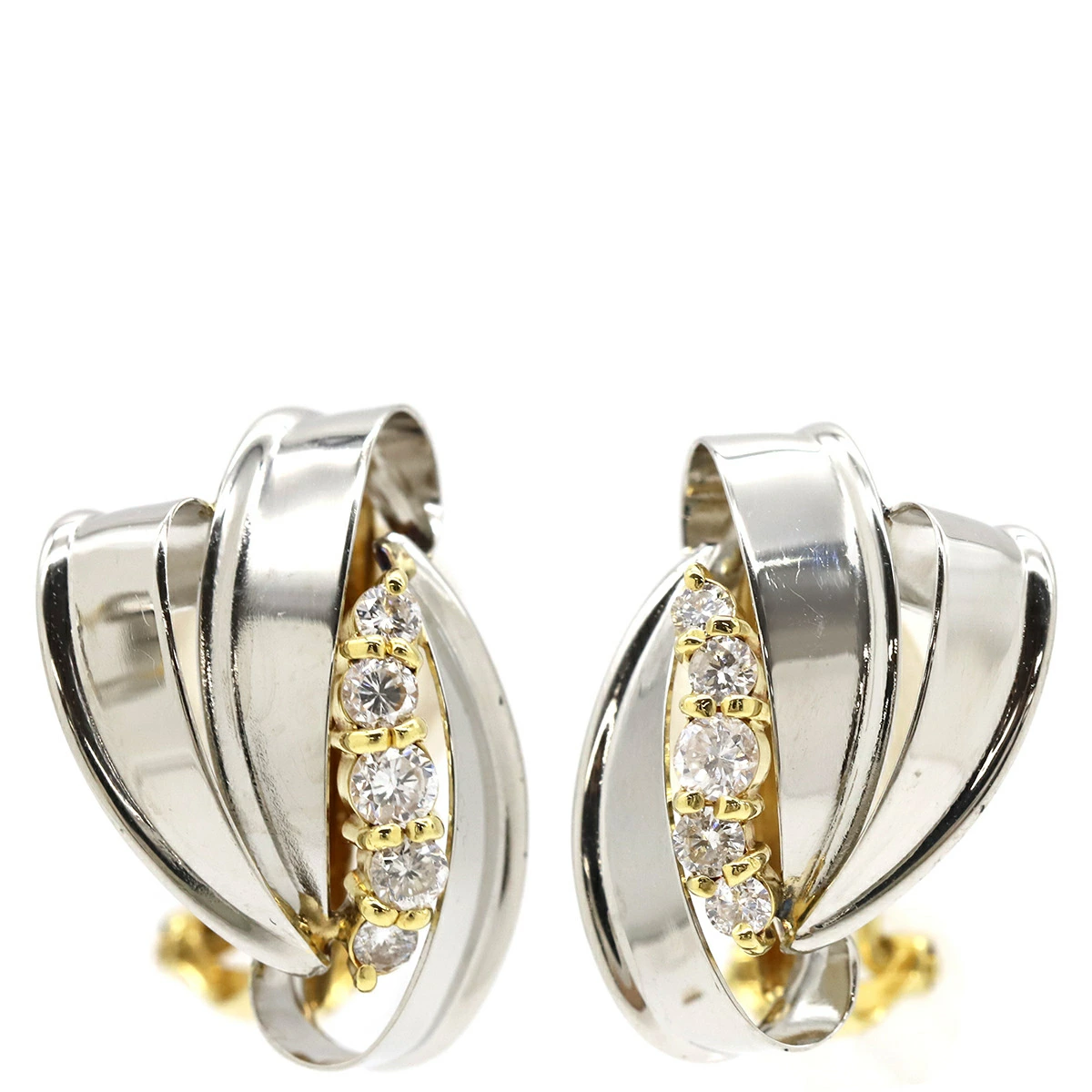 ▲クリックで拡大されますノンブランド NON BRAND イヤリング ダイヤモンド コンビ K18YG Pt900 ダイヤモンド プラチナシルバーXイエローゴールド 750 18K プラチナ - レディース定番 人気 美品 【中古】