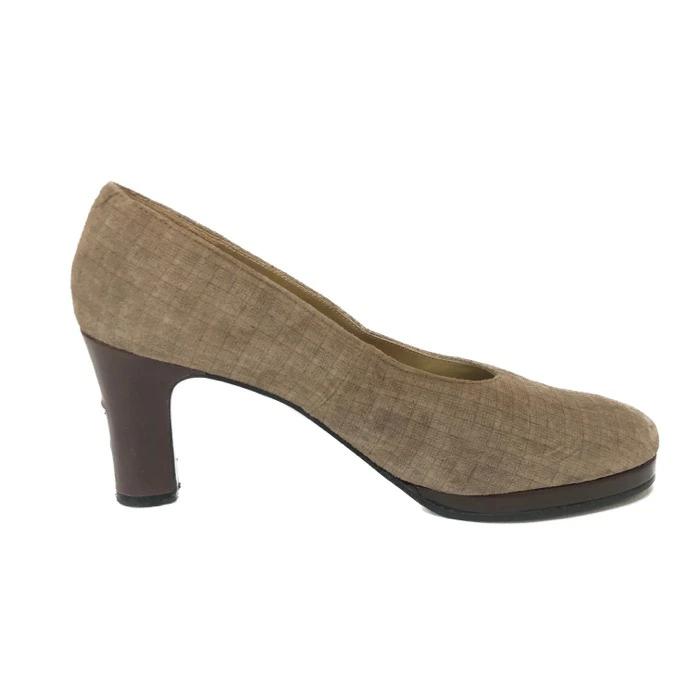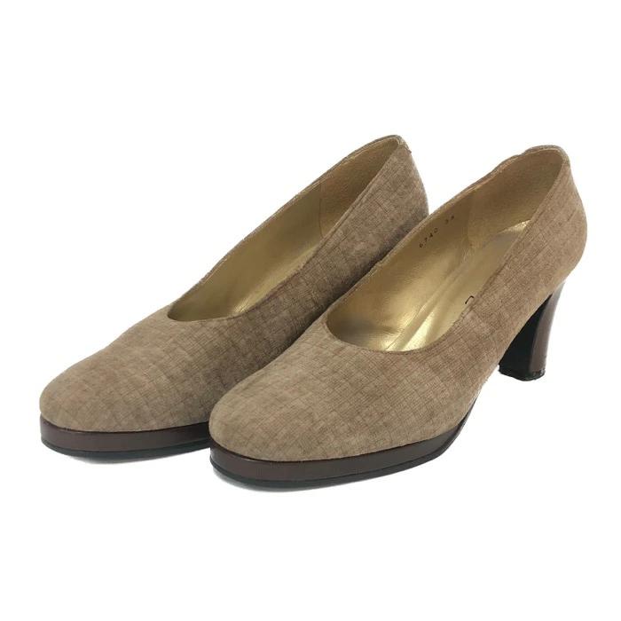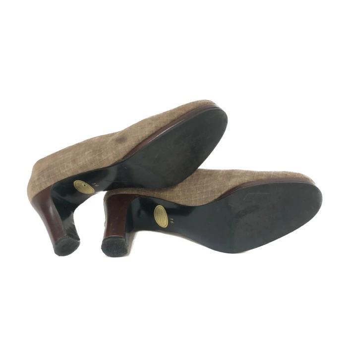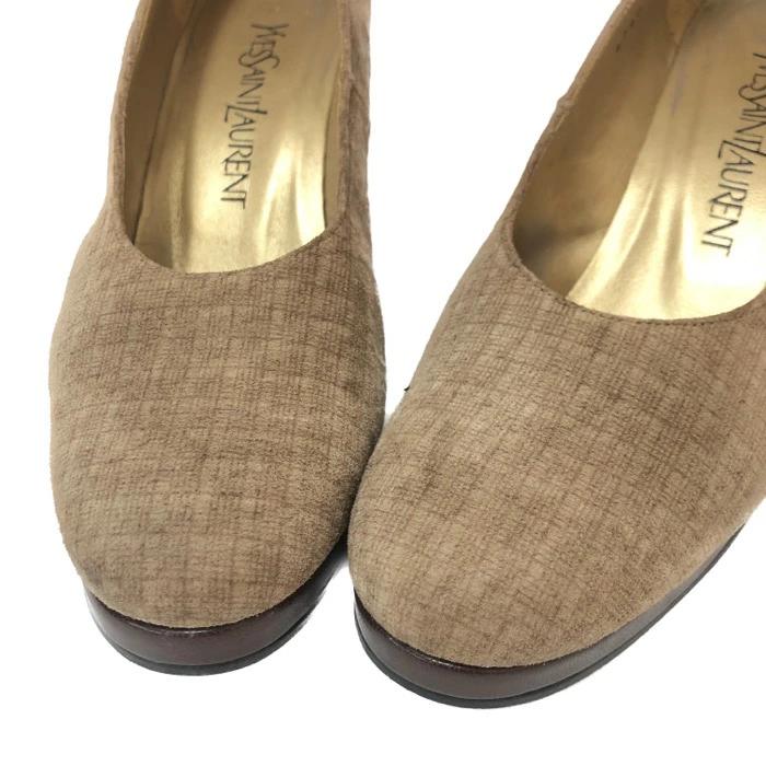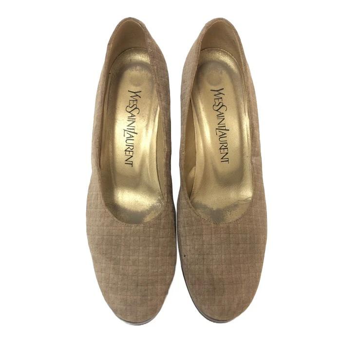 Pre-owned Yves Saint Laurent round-toe pumps, size 36 (equivalent to 23cm), brown with a check pattern.