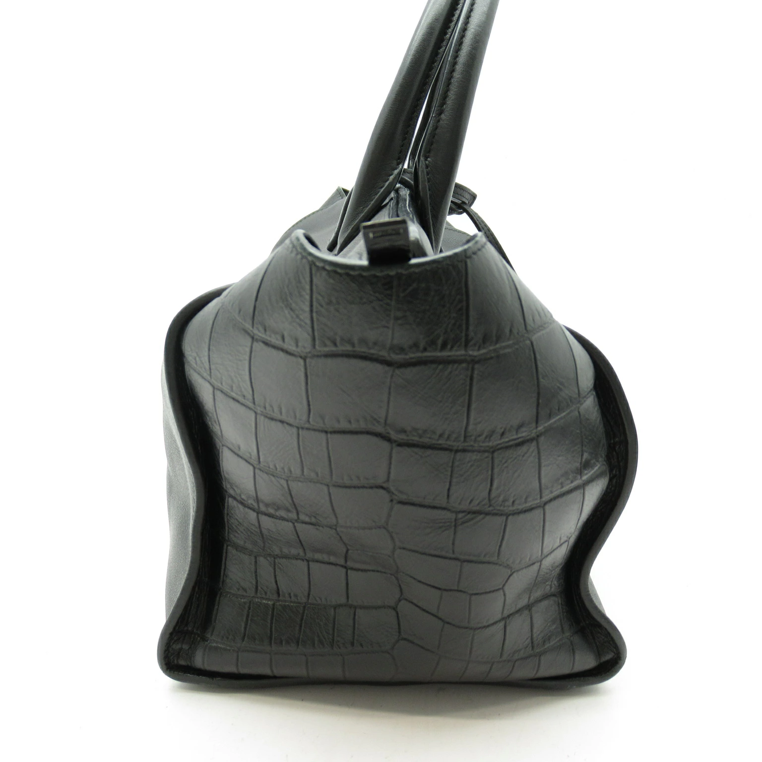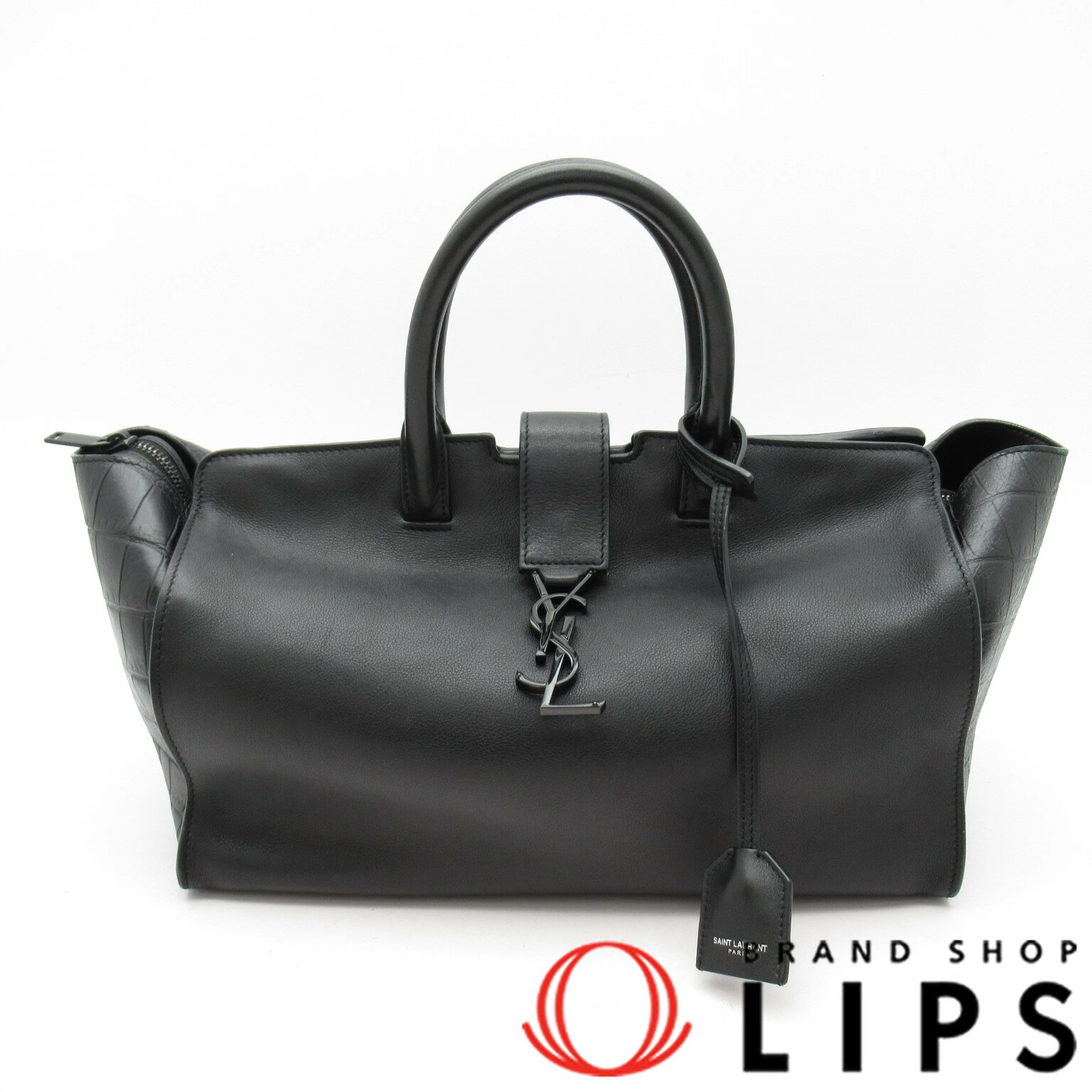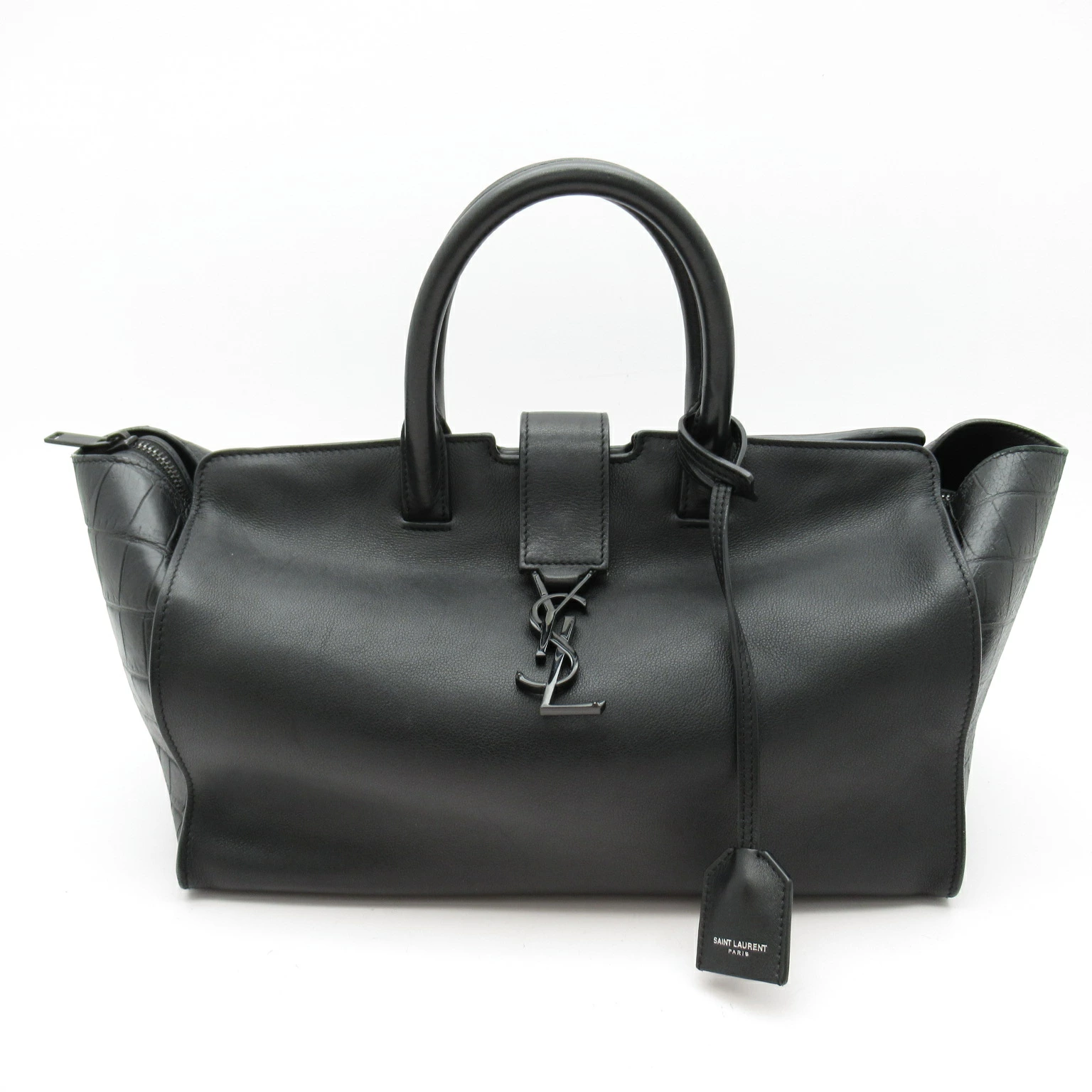 Pre-owned Yves Saint Laurent Downtown Cabas handbag 436832 in black crocodile-embossed leather.