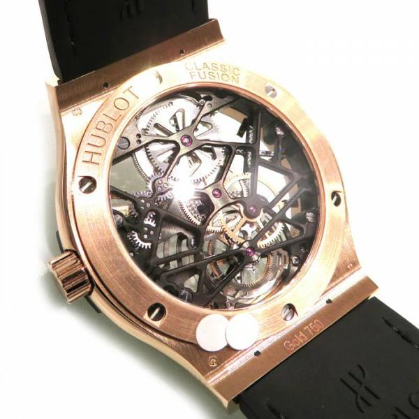 お問い合わせ商品IDW204066ブランドウブロ商品名ウブロ HUBLOT クラシックフュージョン クラシコスケルトントゥールビヨン ダイヤモンド 505.OX.0180.LR.0904 グレー文字盤 新品 腕時計 メンズ型番505.OX.0180.LR.0904文字盤色グレー文字盤種スケルトン素材キングゴールドダイヤモンドレザーxラバー革ラバーサイズケースサイズ: 45.0mmムーブメント手巻き機能トゥールビヨン防水日常生活防水当店保証ご購入日より2年付属品国際保証書(ギャランティー) 有り純正ボックス 有り商品状態[ 新品 ]※詳細はお問い合わせください。箱が経年劣化によりダメージがあります。商品説明クラシックフュージョンは、初代デザインである“クラシック”を受け継いでいるモデルです。ブランド名でもある舷窓をモチーフにデザインされており、初代のころよりビスの数が12個から6個になり、ウブロ最薄のケースには無数のダイヤモンドが埋め込まれた豪華なモデルです。経年劣化の少ないキングゴールドを使用したケースの厚さはわずか2.9mmで6時位置にトゥールビヨンが搭載されております。 またスケルトンのため、ゼンマイの残量を容易に確認できます。ご注文・ご来店前にご確認くださいませご来店購入をご希望の場合は、ご来店前に在庫の確認をお願いいたします。当サイトの商品は、実店舗でも販売しておりますので、あらかじめ在庫のご確認をお願いいたします。売り切れの際はご注文をキャンセルさせていただきます事ご容赦くださいませ。流通事情などにより付属品の一部がご提供できない場合がございます。商品によってはマイナーチェンジなどにより、掲載画像と現物に差異がみられることがございます。ご使用のパソコン環境により、掲載画像と現物の色合いに若干差異がみられることがございます。予告なく価格が改定される場合がございます。返品について通信販売にてご購入いただきました商品は、品質・梱包に万全を期しておりますが、万が一ご到着時に破損・不具合がございましたら2日以内にご連絡をお願いいたします。未使用の場合に限りご返金させていただきます。なお、上記以外の理由やお客様都合、ご使用済みの商品のご返品はお受けいたしかねます。