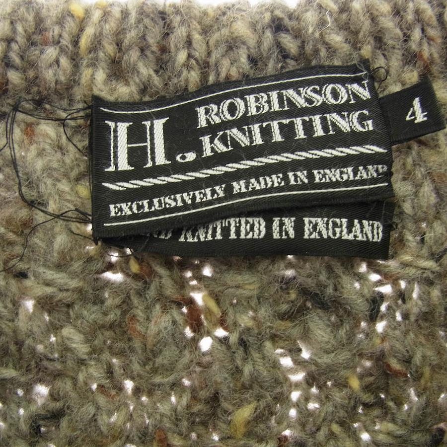 H. Robinson Knitting Hand-Knitted Cable P/O Bi-Color, Made in England, Handmade Wool Knit, Gray, Size 4, Men's [Pre-owned]