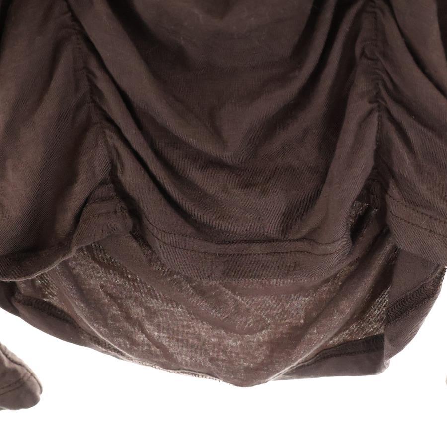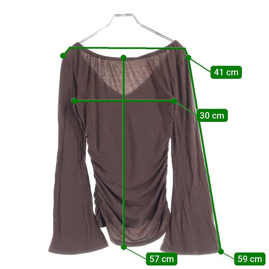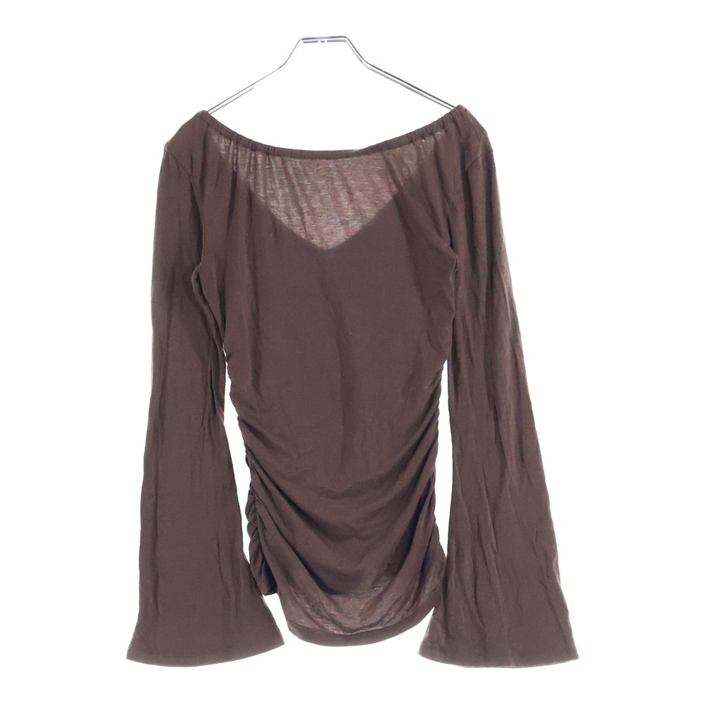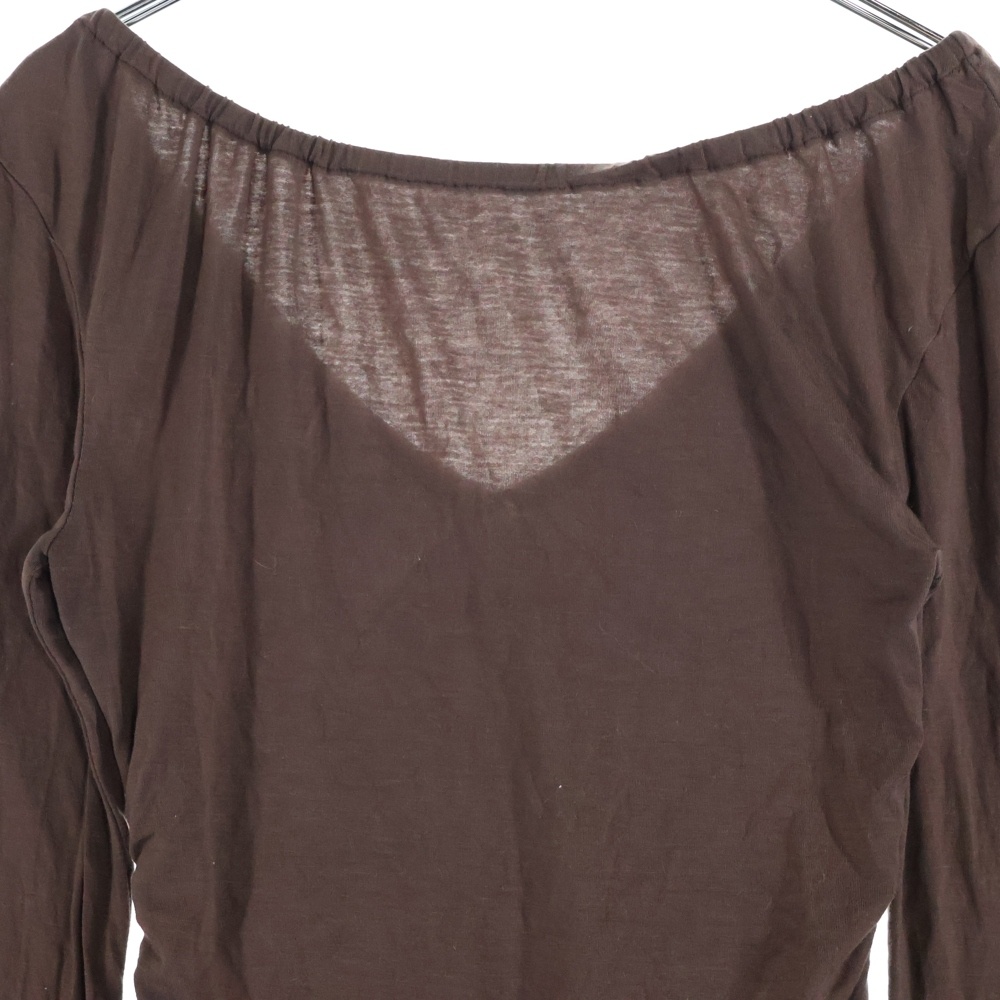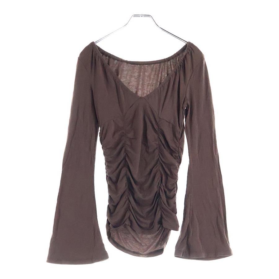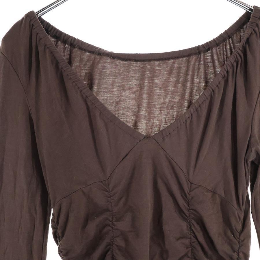 [モデル]ギャザーデザイン Vネック ロングスリーブ 長袖 Tシャツ カットソー ブラウン レディース