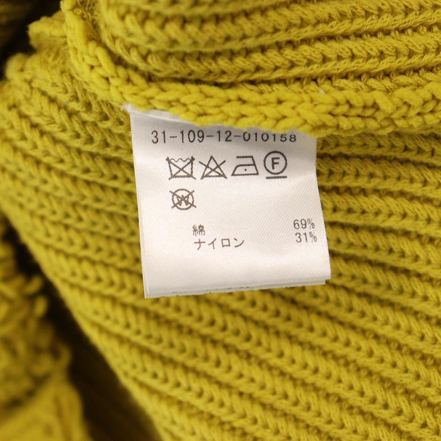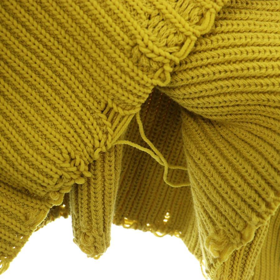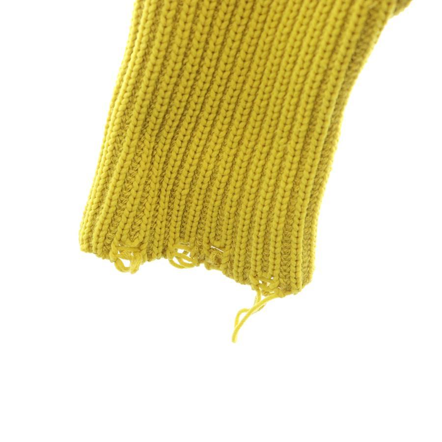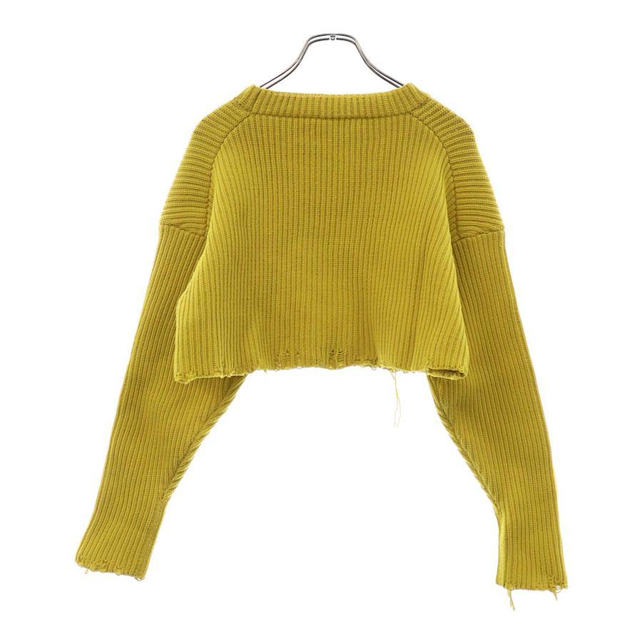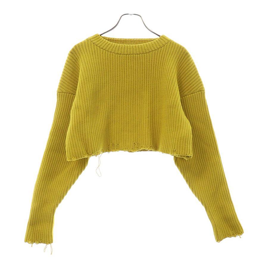 [モデル]ダメージ加工 クロップド クルーネック ロングスリーブ 長袖 ニット セーター イエロー レディース 31-109-12-010158