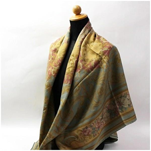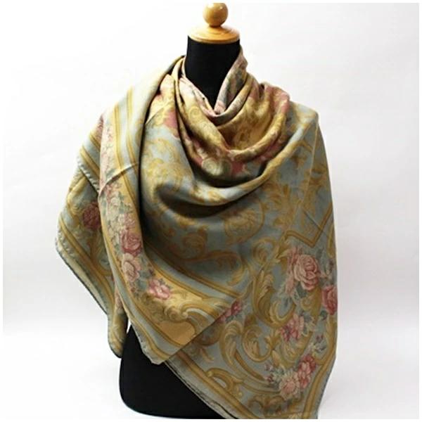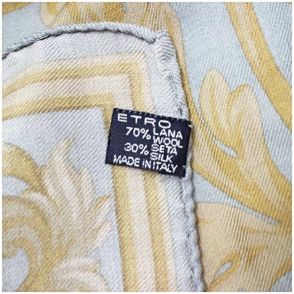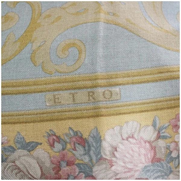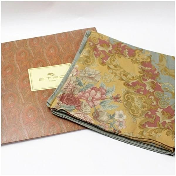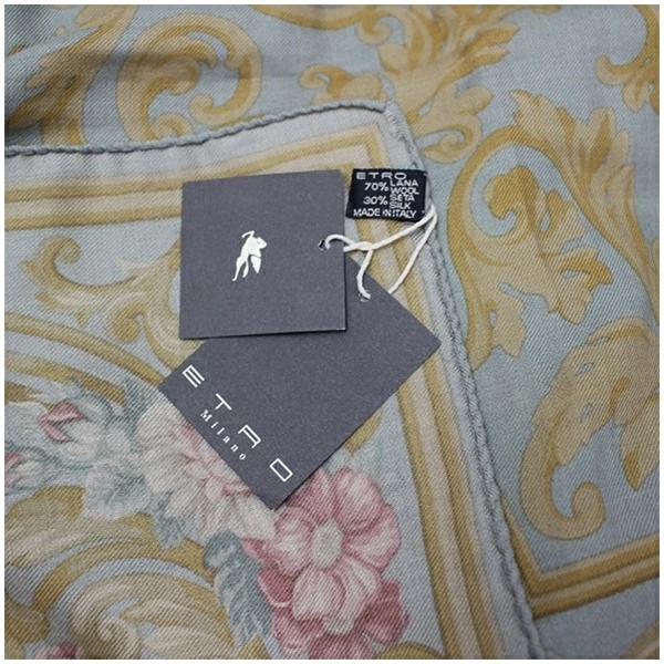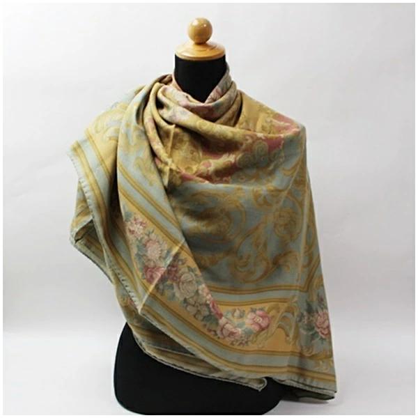 | 商品名 | エトロ ウール シルク 大判スカーフ ストール マスタード×くすみグリーン 花柄 中古 Aランク ETRO |