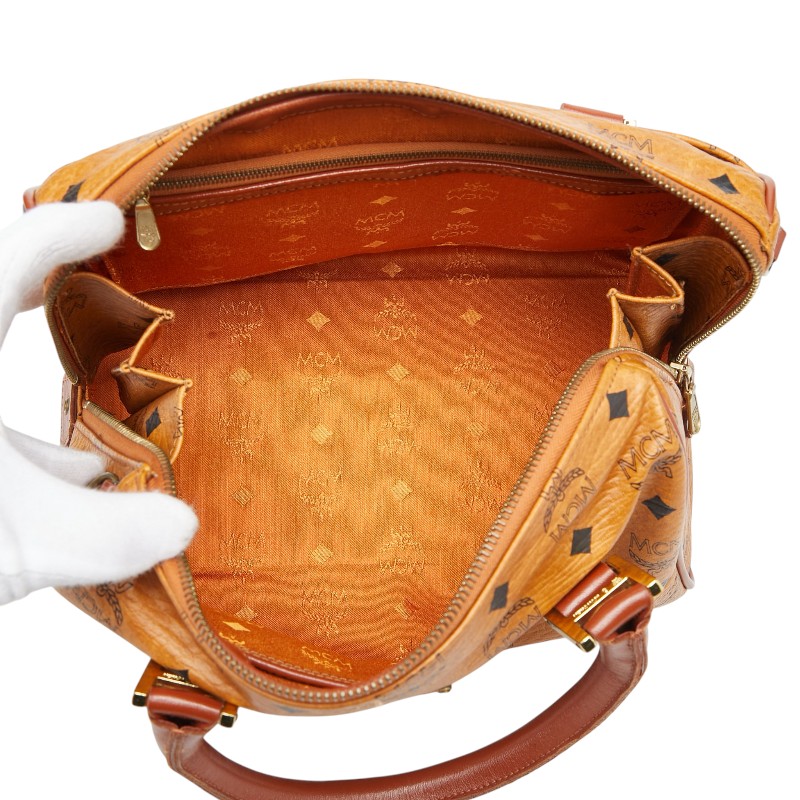 - エム シー エム ヴィセトス ロゴグラム ミニボストンバッグ ハンドバッグ 2WAY ブラウン PVC レザー レディース MCM 【中古】
