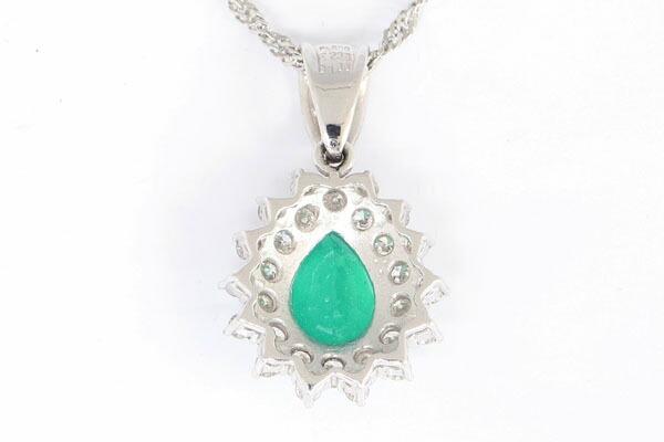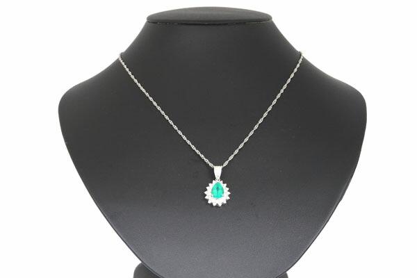 コメント:2ctオーバーの大粒エメラルドと、それを取り囲むように散りばめられた計1ct以上のダイヤモンドがエレガントなネックレスです。