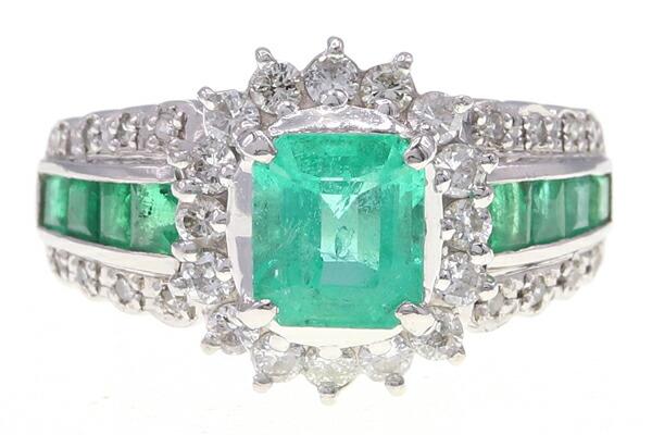 エメラルドダイヤモンドリングE1.09ctE0.65ctD0.53ctPt90012.5号中古指輪ジュエリー宝石レディース女性EmeraldDiamond
