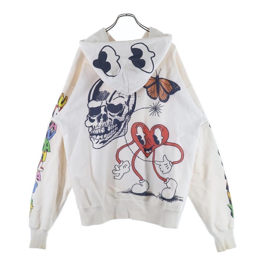 ■商品情報[商品番号]3825I170006[ブランド]Emotionally Unavailable(エモーショナリー アンアヴェイラブル)[モデル]SUPER HOODIE 総柄プリント プルオーバーパーカー ホワイト EU-A21-0000-009[サイズ]平置き採寸 着丈:72センチ 身幅:63.5センチ 肩幅:66センチ 袖丈:71センチ表記サイズ:XL■状態・コンディション[状態ランク]ランク B使用感有り全体的にヨレ/毛羽立ち有り首元/袖/裾部分に汚れ有り