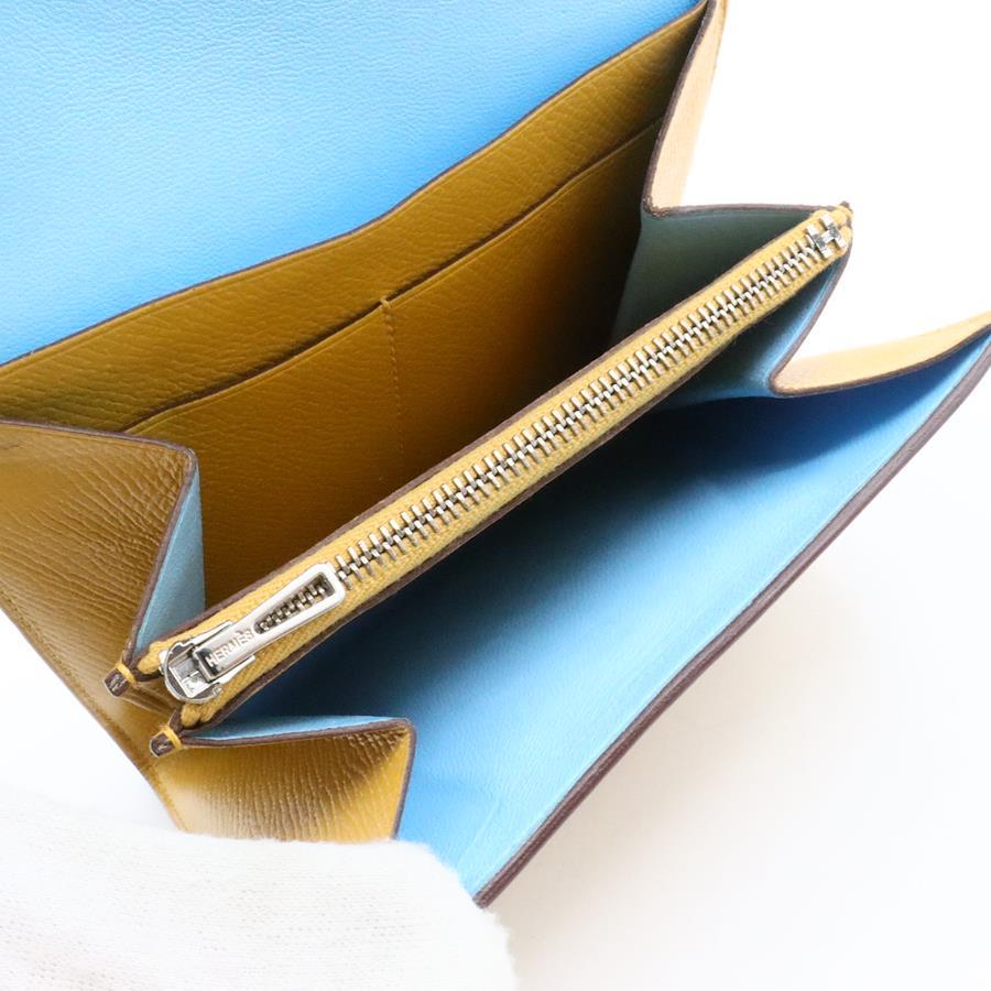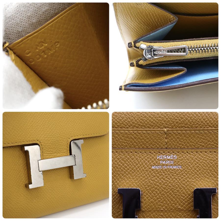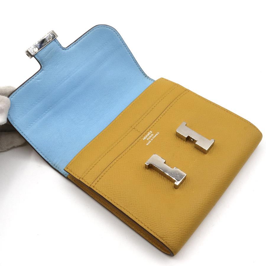 【商品説明】品名 エルメス エプソン コンスタンス コンパクト 財布 イエロー ブルーシリアルナンバー Cサイズ 約縦12センチ 横12.5センチ 厚み2センチ仕様 小銭入れ1 札入れ2 ポケット3 カード入れ4付属品 なし【商品状態】剥がれ、ベタつきありません。ファスナースムーズです。ボタンしっかりとまります。若干のスレ、ヨレがあります。届いたらすぐに気持ちよくお使いいただけるコンディションです。この機会に是非お買い求めください