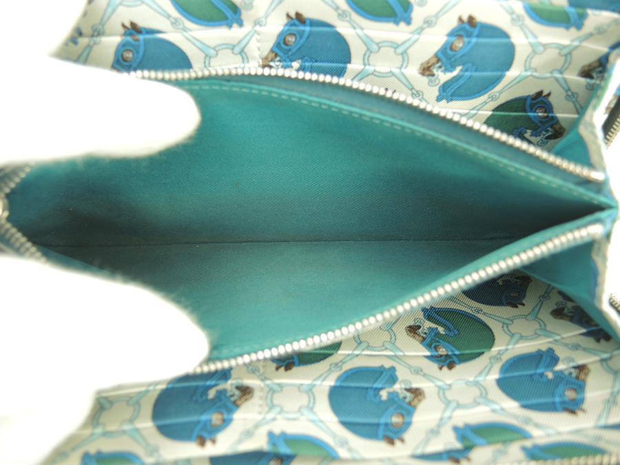 情報 : ボディはスレ・汚れもなく綺麗です。角・湾曲部淵に薄スレが少しございます。財布内はシミ・汚れもなく綺麗です。コインケース内は銭汚れが全体的にございます。ファスナーの引き手革は薄スレ・薄汚れが全体的にございますが、弱りはございません。ファスナーの開閉はスムースで、脇のコットンにス薄汚れが少しございます。金具部分はクスミが少しございますが、メッキ剥げはございません。