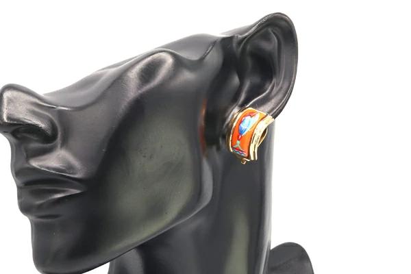 Pre-owned Hermes enamel earrings in orange and gold with cloisonné enamel and feathers. Women's accessories.