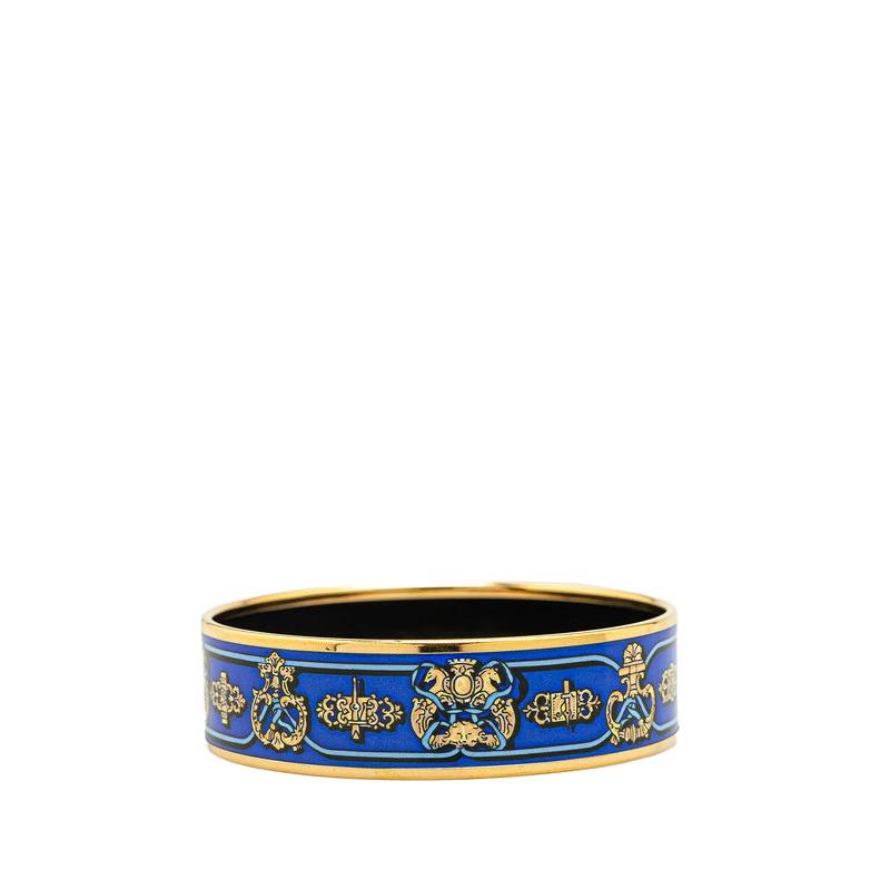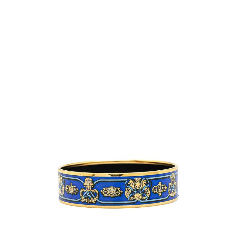 Hermes GM Emaille Bangle, Blue Gold Plated, Women's, Pre-owned