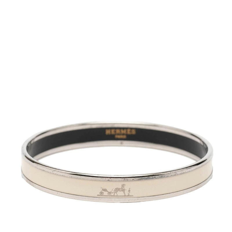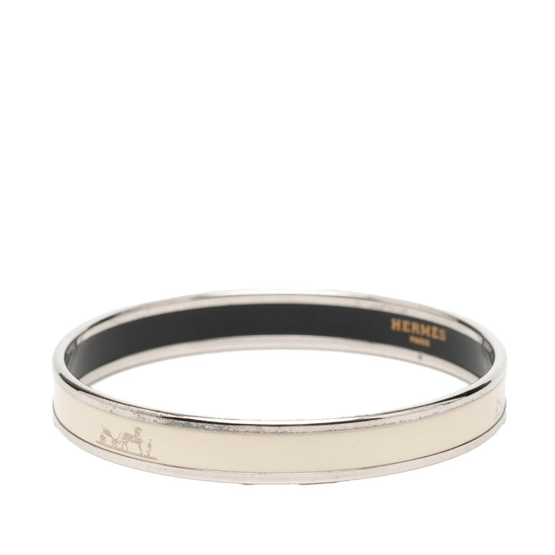 - エルメス 馬車 ロゴ バングル シルバー アイボリー メタル レディース HERMES 【中古】