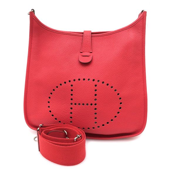 参考色:ブーゲンビリア参考素材:トリヨンクレマンス金具:シルバー刻印:N刻印(2010年製)付属:なし普段使いなどに最適♪エルメスを代表する斜め掛けバッグ、大人気の『エヴリン3GM』が入荷しました☆ エヴリンシリーズの中では唯一ストラップの長さ調節できるエヴリン3なら持ち運びがしやすく、色んな場面で活躍できますね♪正面にHマークが大きくデザインされており、ブランドアピールもバッチリです!背面にはポケットが1ヵ所あり、ちょっとした小物類もしっかり分けて収納できます。状態は角スレ、型崩れ、背面ポケット内に汚れやペン跡がございます。内側は表面にスレ、毛羽立ちや汚れ、収納臭がございます。また、ショルダーストラップの毛羽立ちや汚れがございます。使用感ややございますが、通常使用には問題無くご使用いただけます♪収納力高く、ショルダーの調節が自由に出来、機能性に優れたオススメモデルです!"