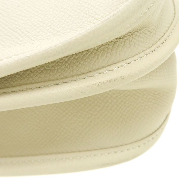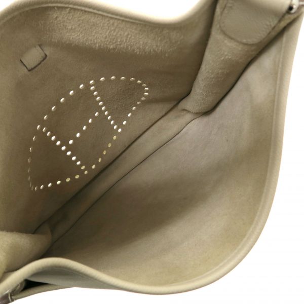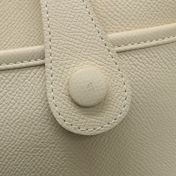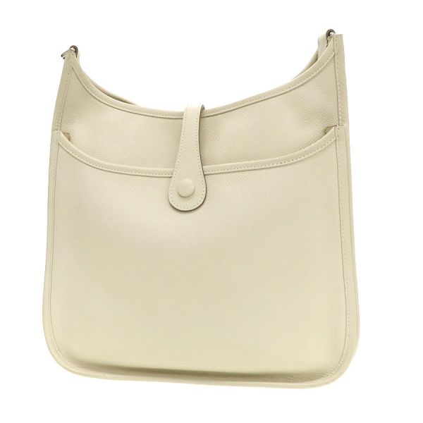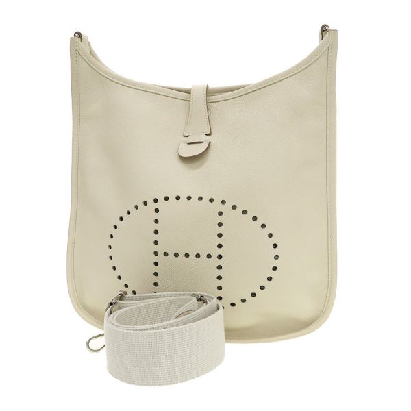 エルメスで大人気のショルダーバッグ『エヴリン3PM』が入荷いたしました☆パンチングで大胆に落とし込まれたエルメスのHがスタイリッシュで、上品なアイボリー系カラーは服装に合わせやすく幅広いシーンでお使いいただけます。エヴリン3PMは自由にストラップの長さ調節ができて、薄型で肩かけしたときもすっきりと収まりがいいのが魅力です♪普段お出掛け時によく持ち歩く財布やスマートフォンなどの小物類は余裕に収納できて、さらに背面にもポケットがありますので、分けて収納することもできます。状態はBランクで、本体の型崩れ、表面のスレ、ボタン薄汚れ、ショルダースレ・毛羽立ち、角スレ、内部のスレ・薄汚れ・ヤケ、金具部分の小傷などが見受けられますが、使用に支障のあるダメージはなくまだまだご愛用いただけますよ!人気のエブリン3PMいかがでしょうか?