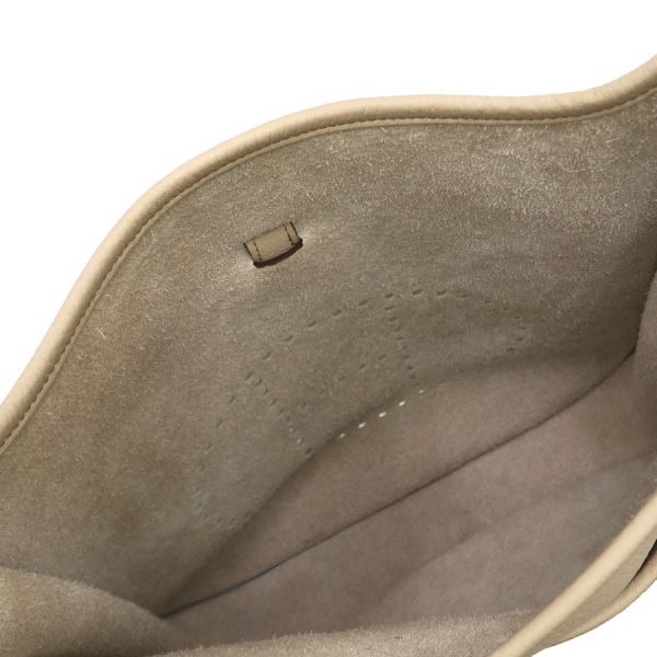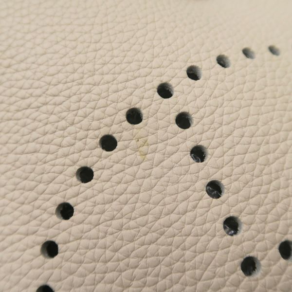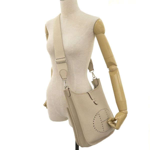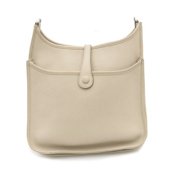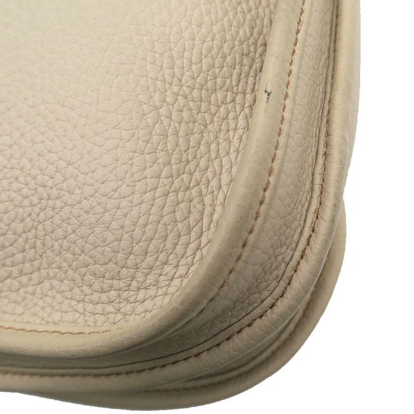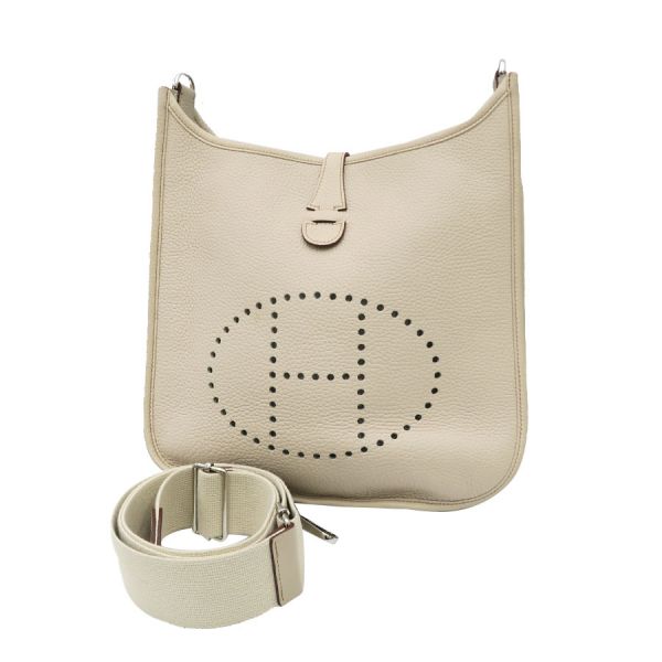 エルメスで大人気のショルダーバッグ『エヴリン3PM』が入荷いたしました☆パンチングで大胆に落とし込まれたエルメスのHがスタイリッシュで、上品なクリーム系カラーは服装に合わせやすく幅広いシーンでお使いいただけます。エヴリン3PMは自由にストラップの長さ調節ができて、薄型で肩かけしたときもすっきりと収まりがいいのが魅力です♪普段お出掛け時によく持ち歩く財布やスマートフォンなどの小物類は余裕に収納できて、さらに背面にもポケットがありますので、分けて収納することもできます。 状態はBランクでの入荷になり、若干の型崩れ、角やフチ周り・間口のスレと黒ずみ汚れ、表面のスレと薄汚れ・一部汚れ、ショルダーのスレと根元の付着汚れ、金具の小傷、内側のスレと若干の変色と汚れがございます。Bランクの使用感となりますが、その分お買い得となり、大変お勧めです!