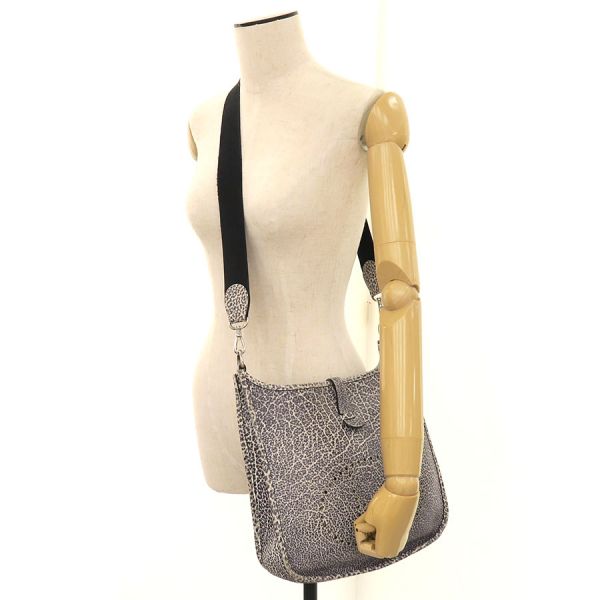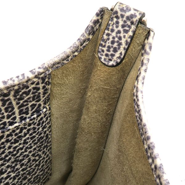 ダルメシアンを彷彿とさせるような加工が施されたエルメスの人気レアバッグ『エヴリンPM』が入荷いたしました。今回はカジュアルにもお使いいただける定番人気ショルダーバッグ“エヴリン”との組み合わせとなり、非常にオススメとなります☆普段使いには勿論◎旅行時のサブバッグとしても優秀なアイテムとなります。内側にはスリットポケットが1つございます。状態はBランクでの入荷になり、若干の型崩れ、角やフチ周りのスレ、側面上部ステッチの汚れmショルダー付け根の金具跡とスレ、ショルダースレと薄汚れ、内側のスレと全体的な汚れ・ペン跡汚れがございます。人気かつレアな廃盤モデルとなりますので、お早目のお問合せお待ちしております。