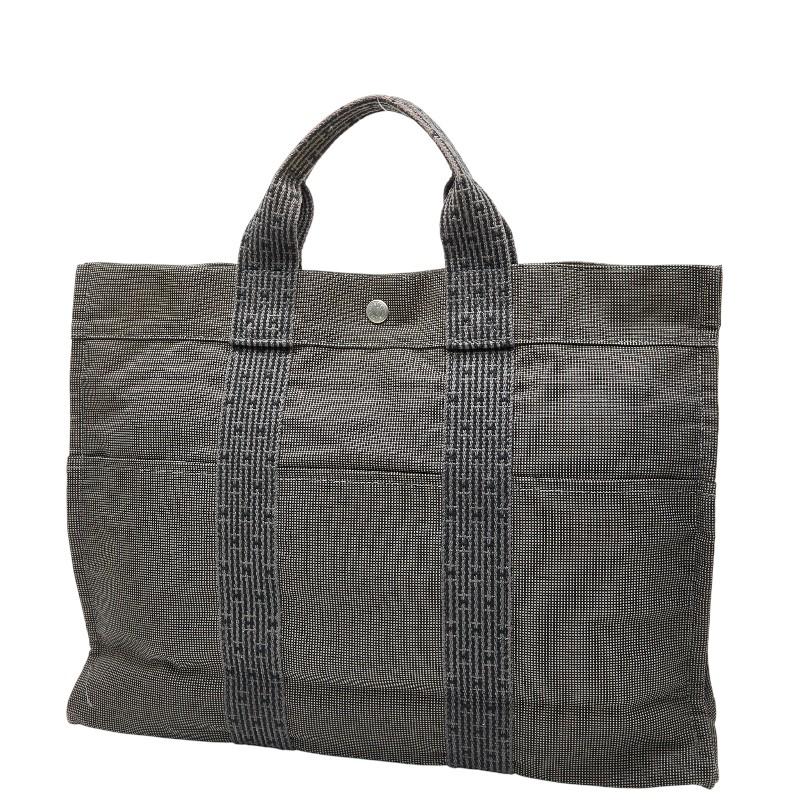 Pre-owned Hermès Air Line Tote MM Handbag, Gray/Black Canvas, Women's