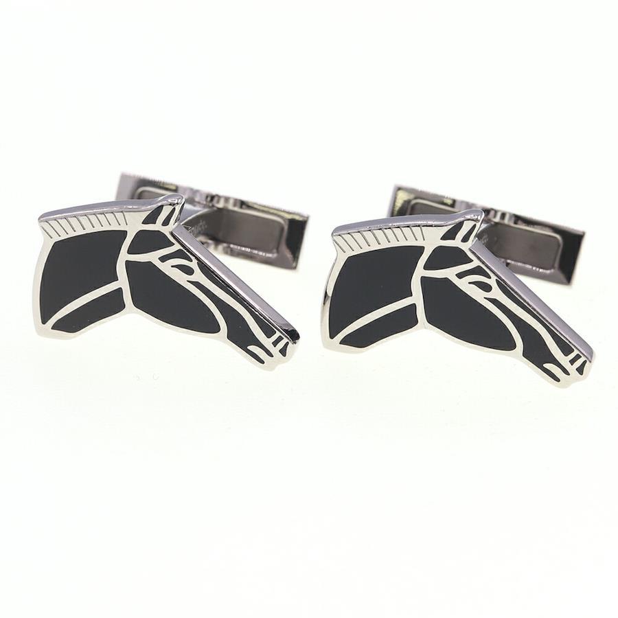 エルメスカフスジョリージャンパーシルバーブラックメタル中古カフリンクスカフスボタンビジネスアクセサリーホース馬メンズHERMES
