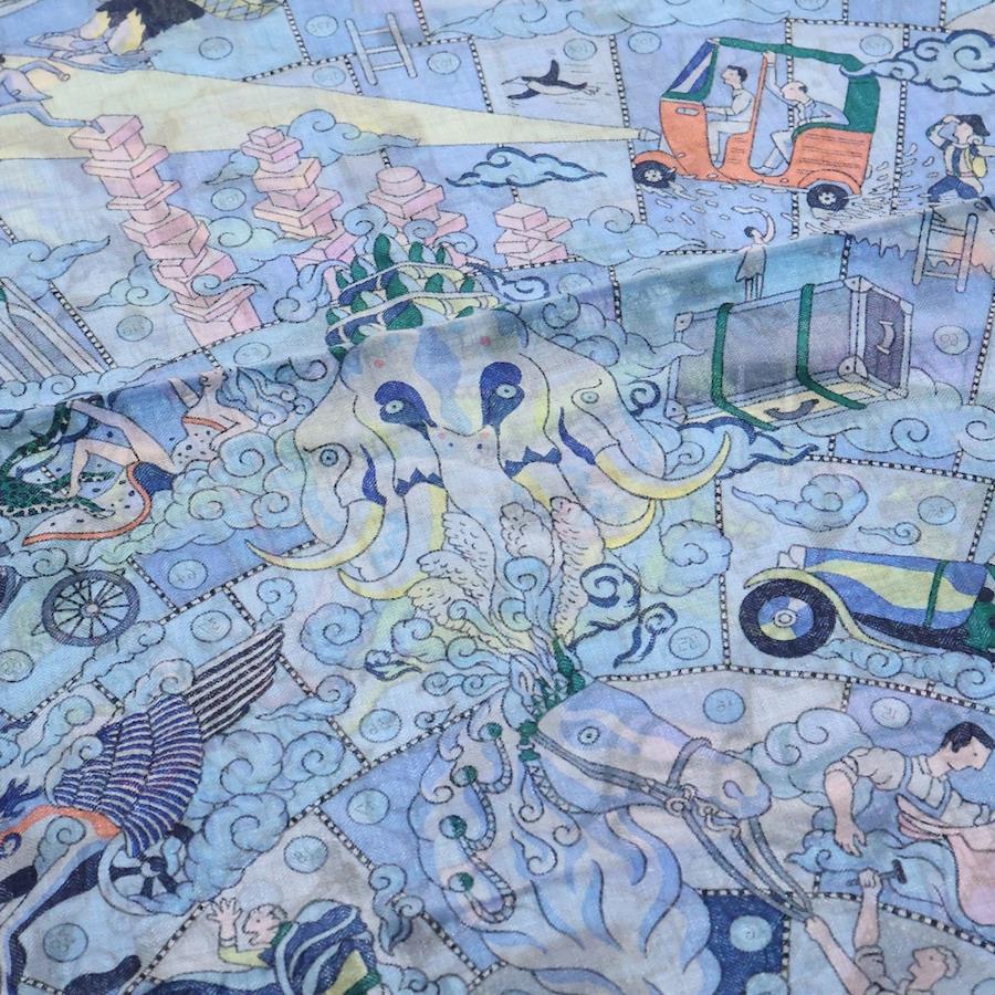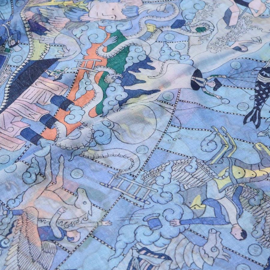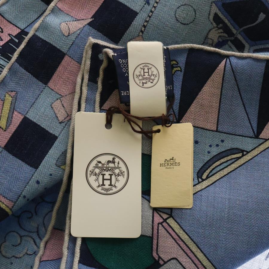 [モデル]カレジェアン 140 L'Epopeed'Hermes エルメスの叙事詩 スカーフ ブルーシエル シルク×カシミア