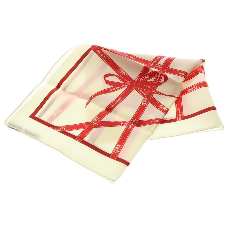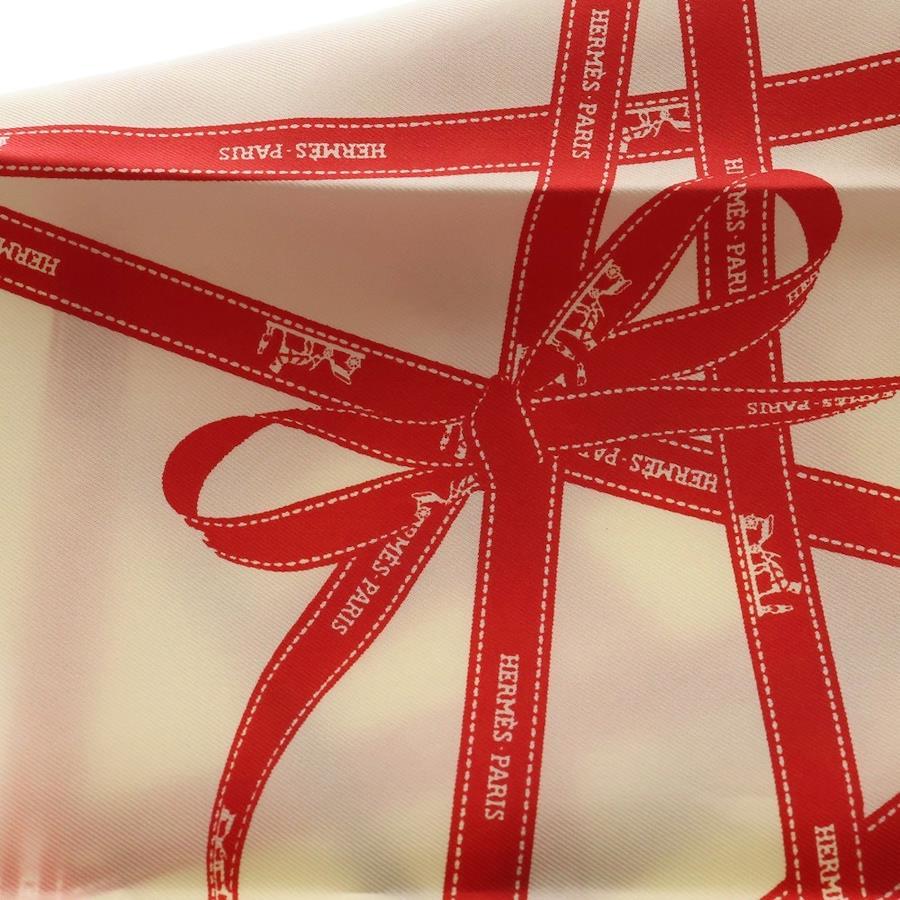 [モデル]カレ40 ボルデュック スカーフ アイボリー×レッド シルク