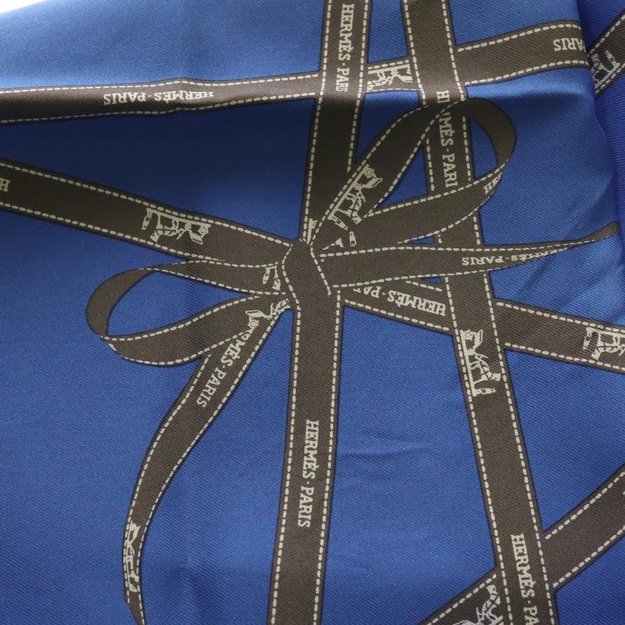 [モデル]カレ40 ボルデュック スカーフ ブルー シルク