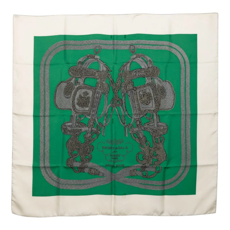 - エルメス カレ90 スカーフ グリーン ホワイト グレー シルク レディース HERMES 【中古】
