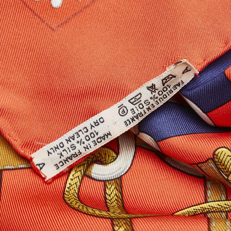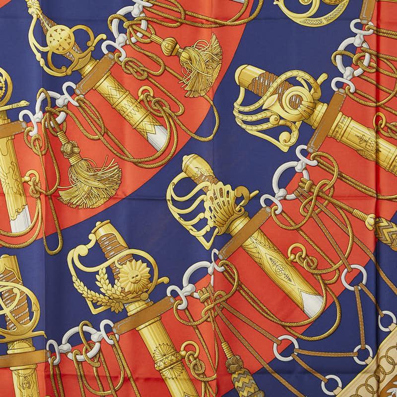 Pre-owned Hermès Carré 90 Cliquetis Sword Pattern Scarf in Red and Multicolor Silk for Women.