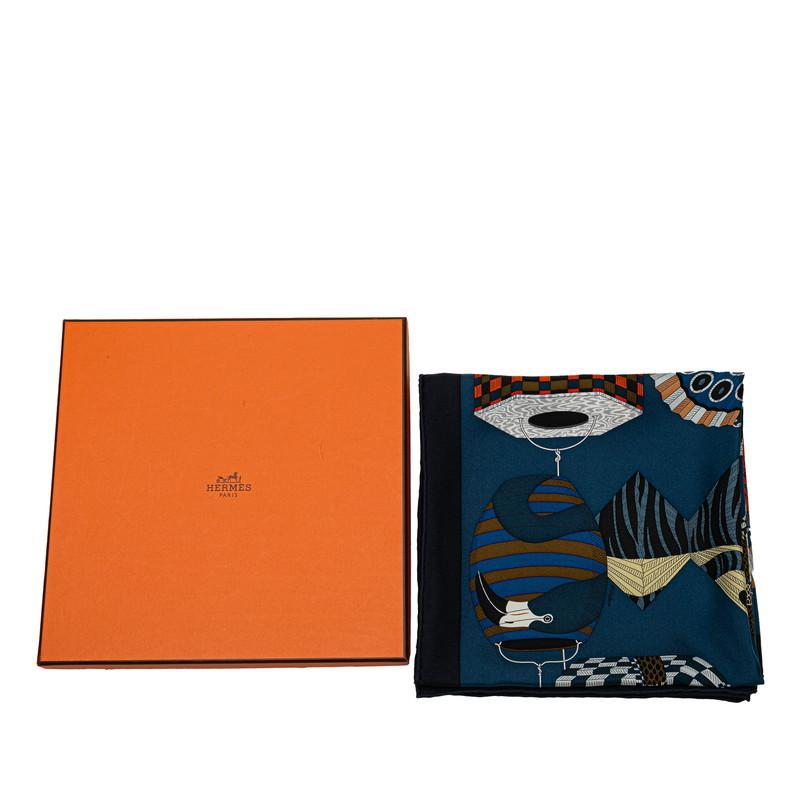 ■商品情報[管理番号]1-0226454[ブランド]エルメス(HERMES)[対象]レディース[カラー] ネイビー マルチカラー[シリーズ]LANTERNES BALLONS & COCARDES ランタン 風船 帽章[ライン]カレ90[素材]シルク[サイズ]W約88cmxH約89cm[付属品]保存箱[状態・コンディション]ランク A