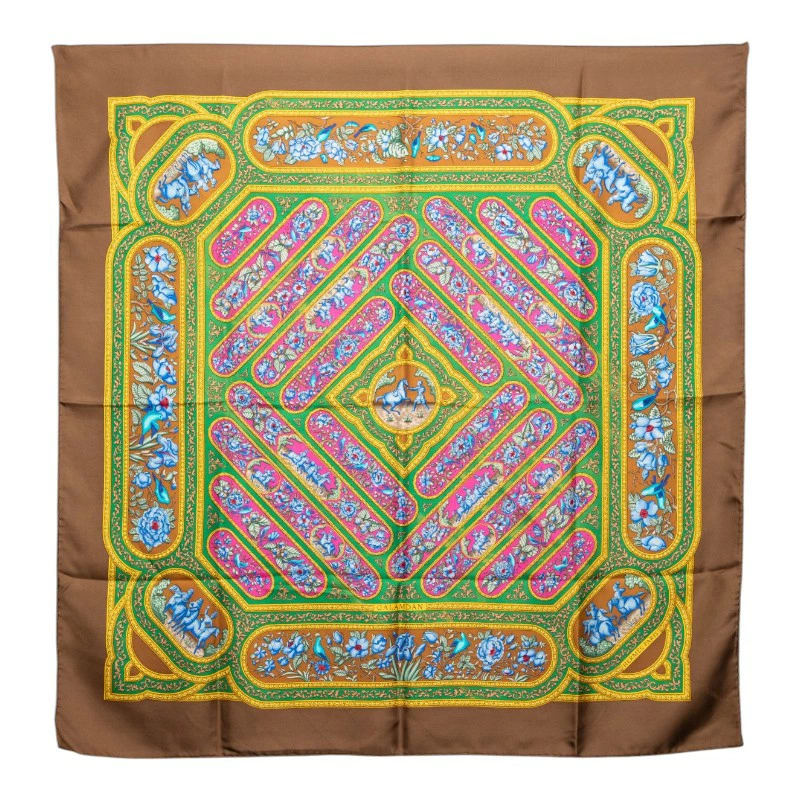 - エルメス カレ90 スカーフ ブラウン マルチカラー シルク レディース HERMES 【中古】