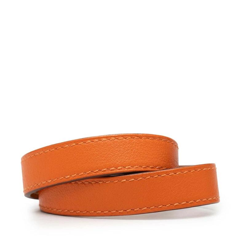 - エルメス 2連 ブレスレット XS オレンジ ゴールド金具 レザー メッキ レディース HERMES 【中古】