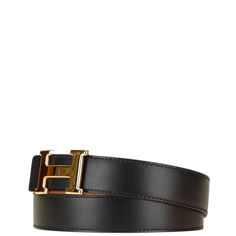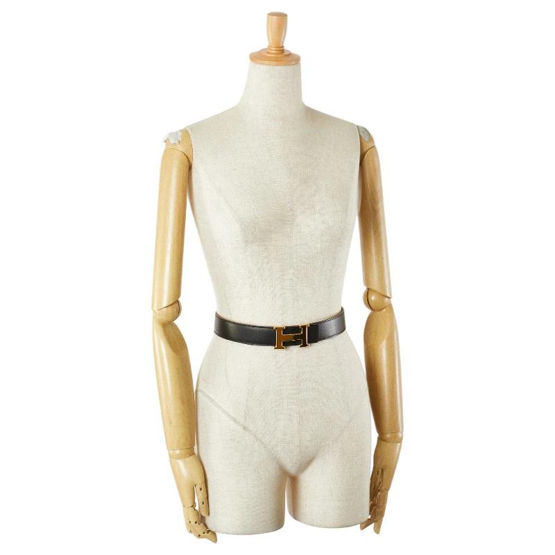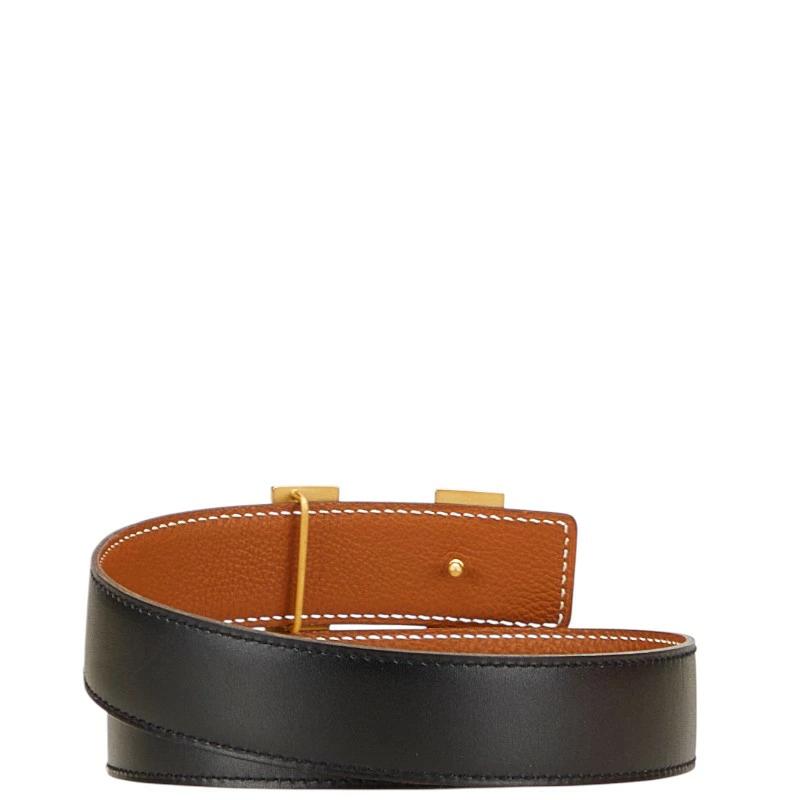 Hermès Constance H Belt, Size 65, Black/Brown Box Calf Togo Leather, Women's, Pre-owned