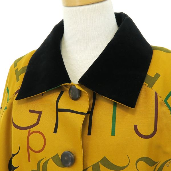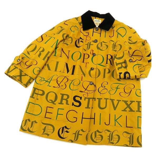 ■採寸#42 肩幅:47cm 袖丈:56cm B:132cm 着丈:88cm■素材表地:コットン75% シルク25%中綿:ウール100% 付属:コットン79% アクリル系21%裏地:アセテート98% ポリエステル2%■コメントエルメスからコートが入荷しました!アルファベットロゴデザインが印象的な、イエローカラーの素敵なコートです☆全体にシワ、ボタンのスレキズ、襟への糸ホコリの付着、タグにやや汚れ、品質タグの一部に裂け、右袖肘付近の糸引き、所々にネップの様なちいさな糸の塊、袖口に若干のスレが見受けられる為Bランクでのご紹介となりました。糸引きがやや目立ちますが、その他は普段着としては問題ない程度かと思います◎