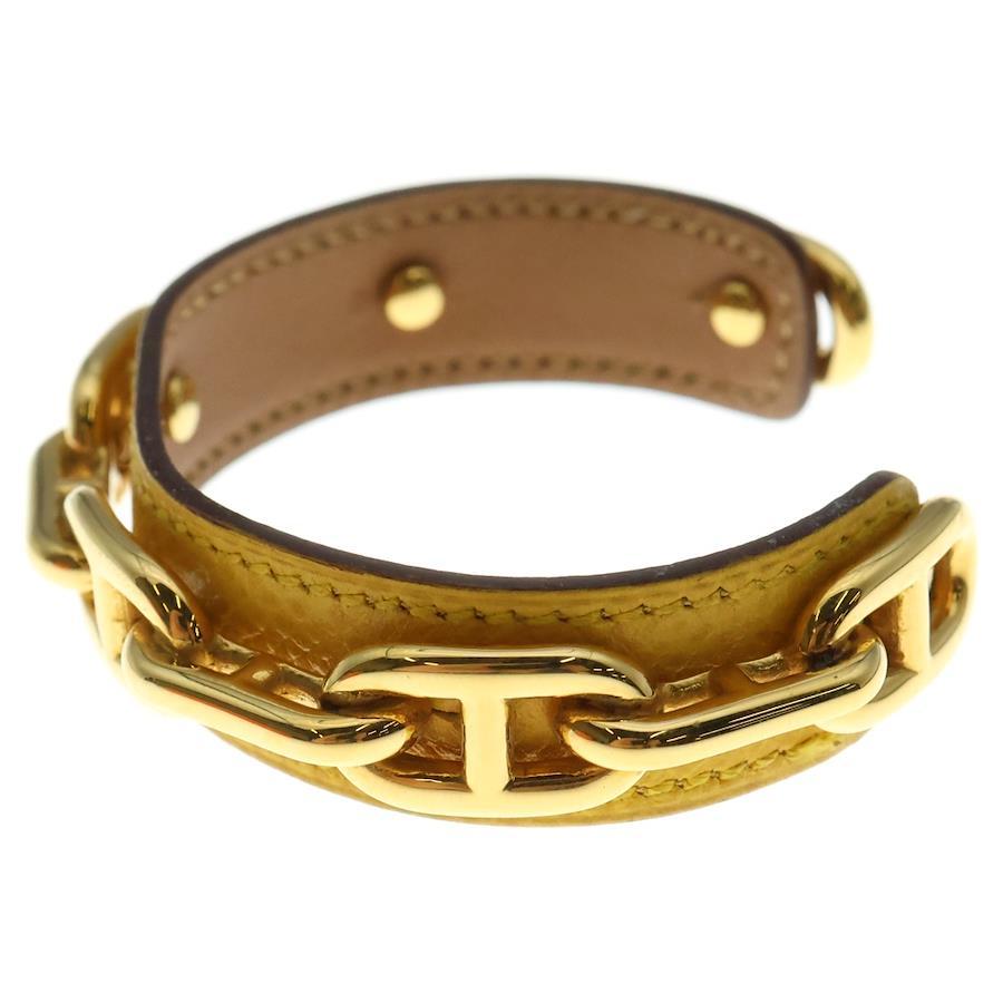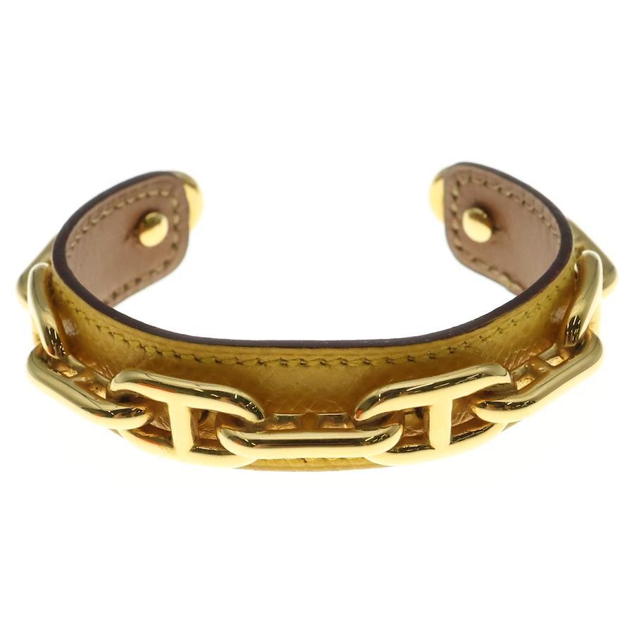 Hermes Chaine d'Ancre Bangle Leather Yellow Gold OS Gold