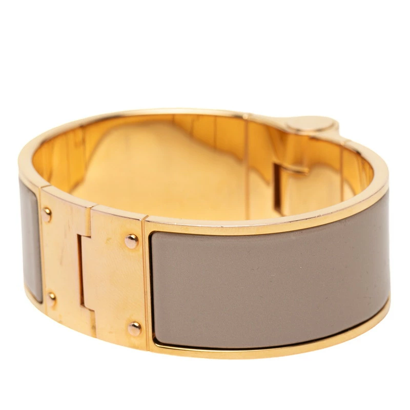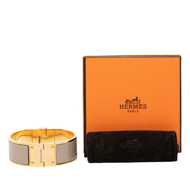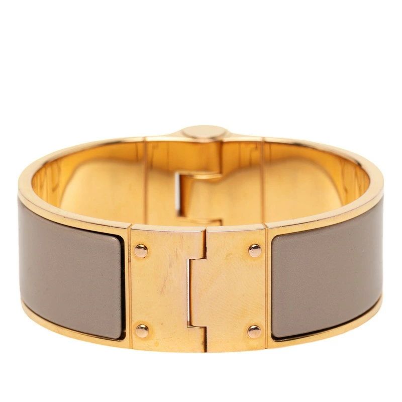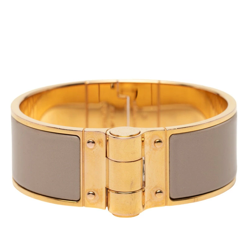 Hermes Charnière GM Bangle Bracelet, Gold and Beige Plated, Women's, HERMES [Pre-owned]