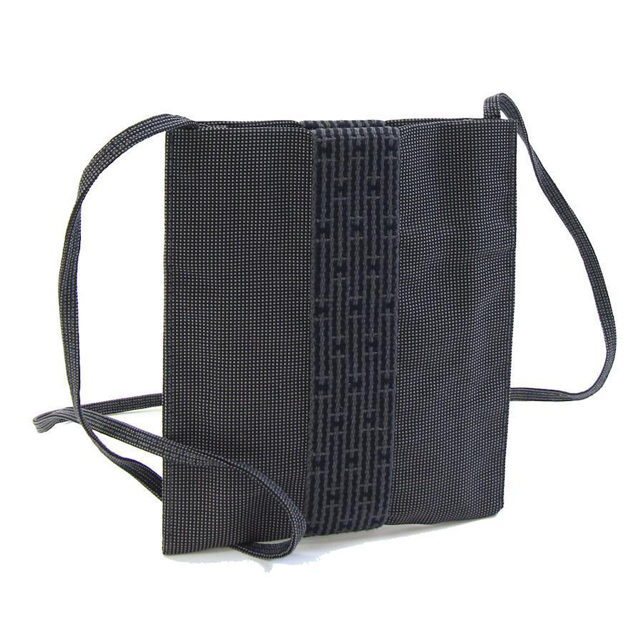 エルメスショルダーバッグエールラインポシェットグレーキャンバス中古斜め掛けミニバッグクロスボディレディースHERMES