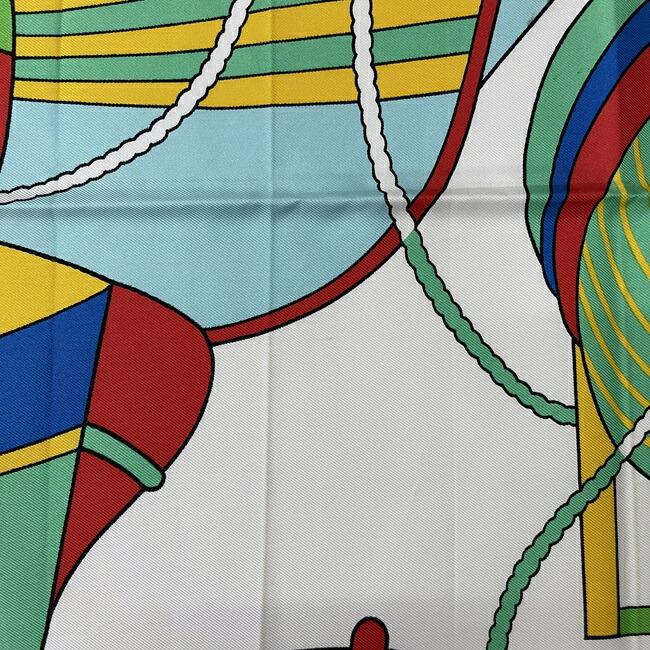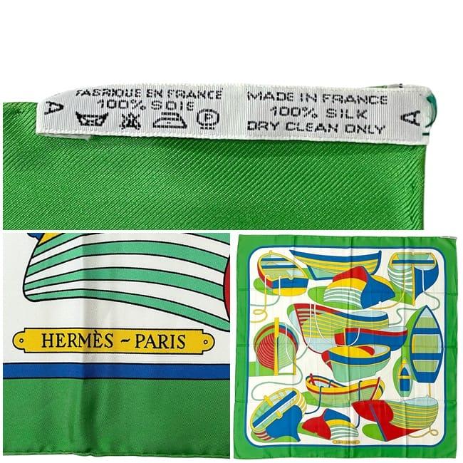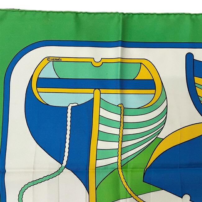 エルメス スカーフ カレ 90 ec-23773 グリーン ブルー ホワイト THALASSA 美品 ボート 海 シルク 100% 中古 HERMES 大判 緑 小船 衣類 カレ90 インテリア ヴィンテージ コレクション 定番 人気 ボートモチーフ アパレル ブランド 本物 鑑定済み