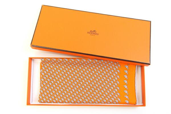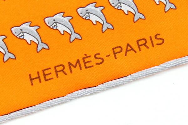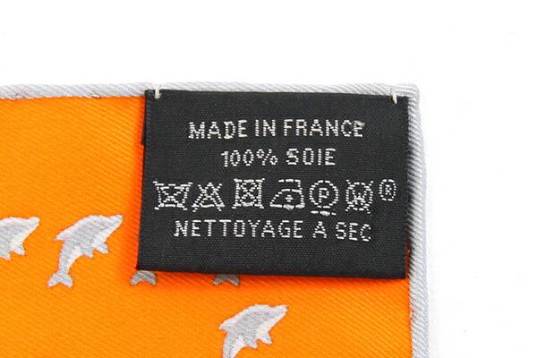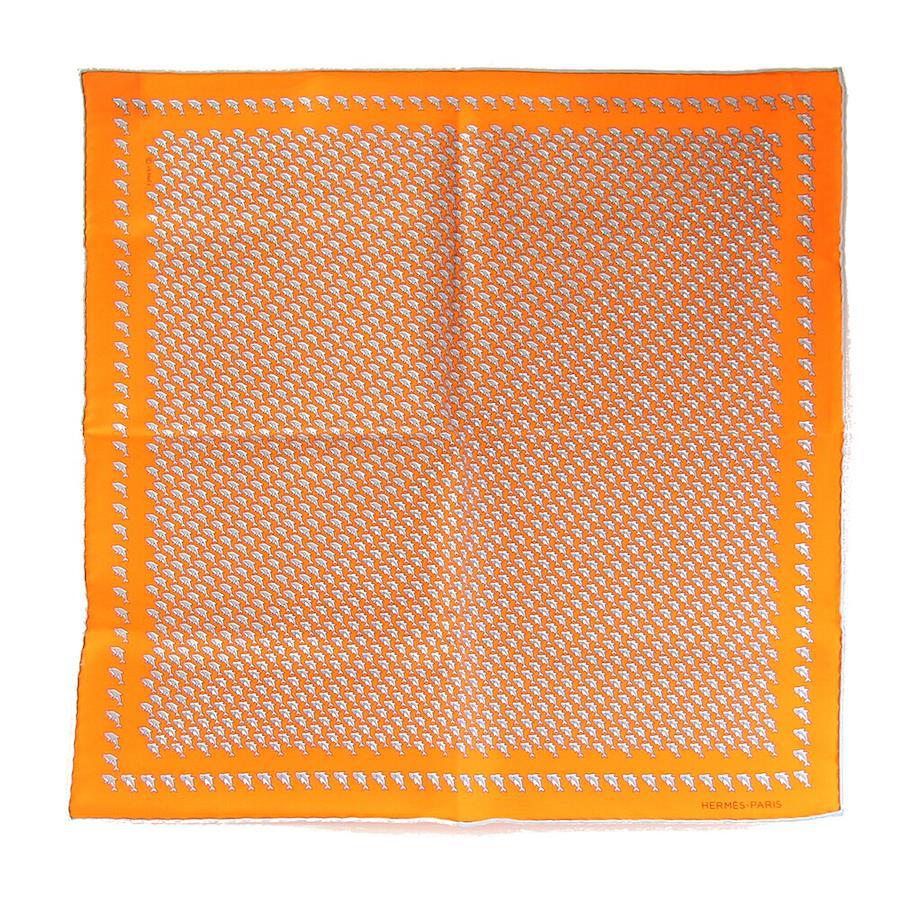 エルメススカーフカレ42オレンジグレーシルク100%中古イルカドルフィン総柄プチカレミニストール正方形レディースHERMES