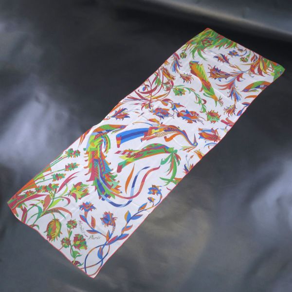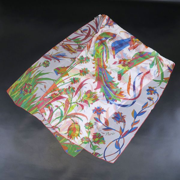■採寸63×178cm■素材シルク100%■コメントエルメスからストール・シルクモスリンが入荷しました。鮮やかな鳥や植物が描かれたシルク100%のストールです☆状態は全体に畳み跡やシワ、品質タグから上10cm右11cm辺りに糸引き等が見受けられますのでBランクでのご紹介です。目立つ汚れやダメージはないので、まだまだ問題なくご使用いただけます◎
