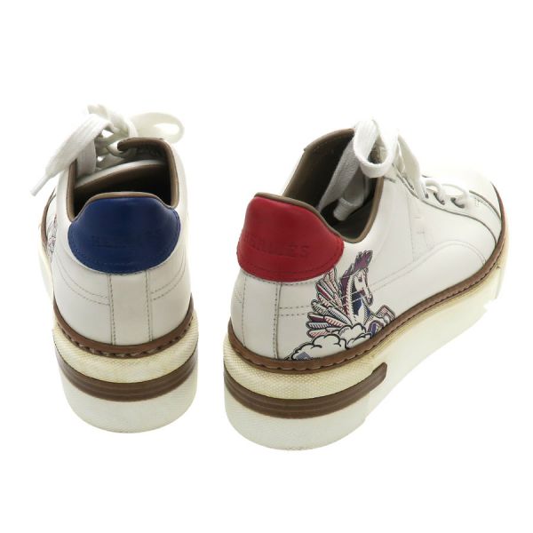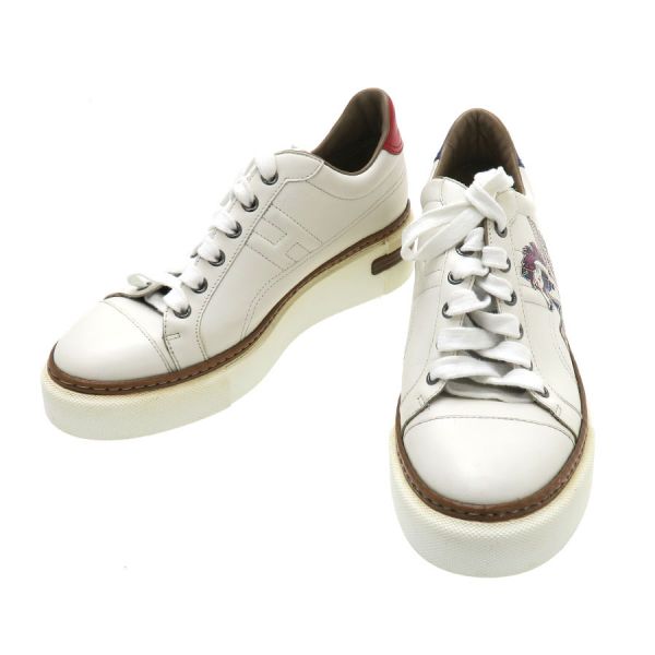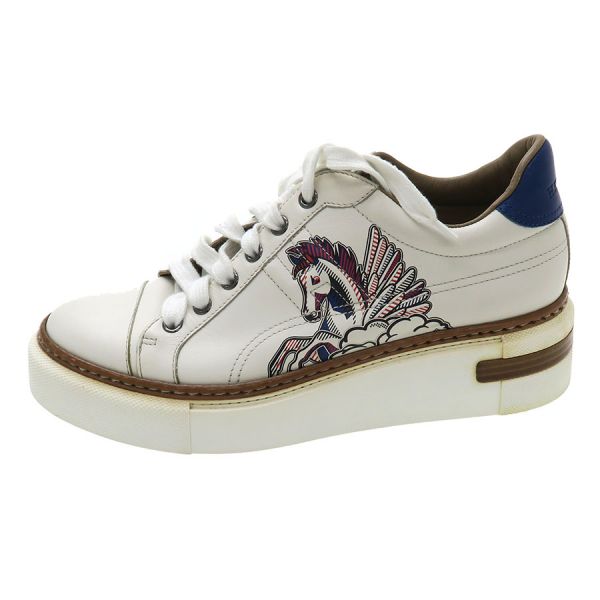 ■採寸#38 日本サイズ:24.5cm 甲幅:9cm ソール高さ:4.5cm■素材表記なし■コメントエルメスからスニーカー・クイッカーが入荷しました。サイドにエルメスの象徴Hロゴにペガサスのプリントデザインがオシャレなスニーカーです☆状態は甲にシワ、つま先・サイド・後に黄ばみや汚れ、靴底にやや汚れ等が見受けられますのでBランクでのご紹介です。目立つ汚れやダメージはないので、まだまだ問題なくご着用いただけます◎