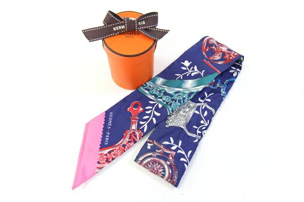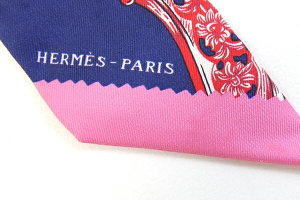 エルメスツイリーブルーピンクシルク100%中古ファッションアパレルバッグチャームレディースHERMES